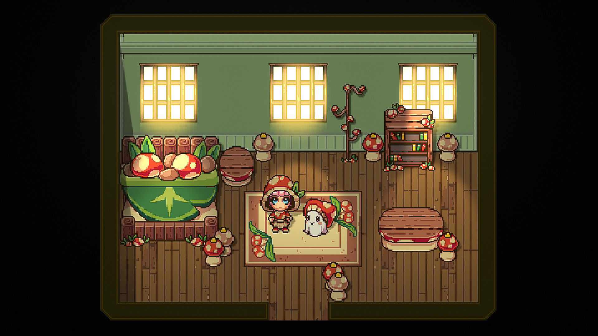 - Mushroom Furniture Set including: Tables, a Bookshelf, a Rug, a Bed, and 2 Decorations