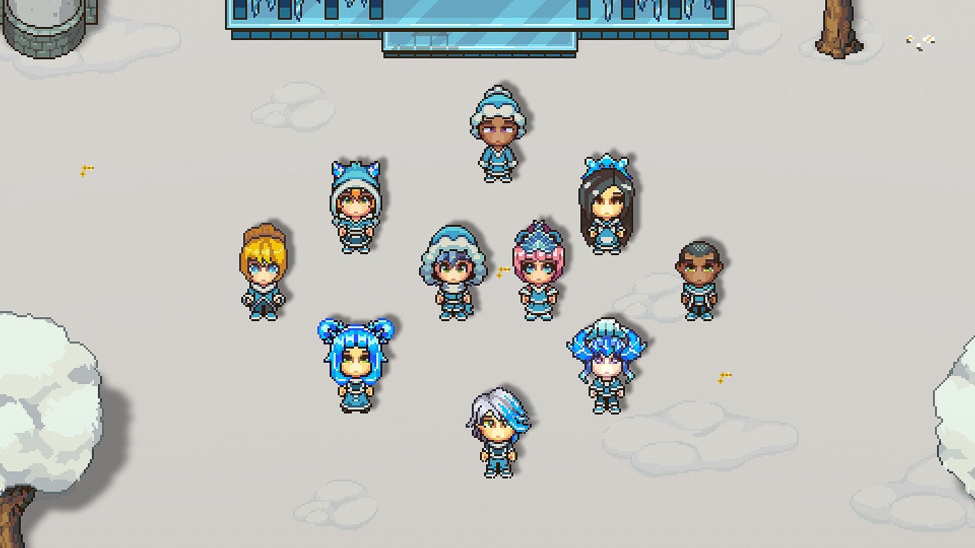 - Ice Outfit Set: Ice Spike Buns Wig, Snow Day Ninja Top, Snow Day Ninja Pants and Snow Day Ninja Scarf