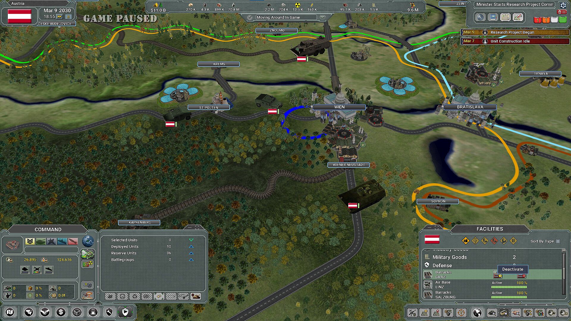 Manage all aspects of your country, right down to financial and supply chain needs. Tanks cost money and people expect to be fed. You'll need a steady hand and good judgement to manage all the competing needs of your nation. Fail to anticipate the needs of your population and you could see your political opponents remove you from power or large chunks of your country simply declare independence. Hope you kept some tanks in reserve!