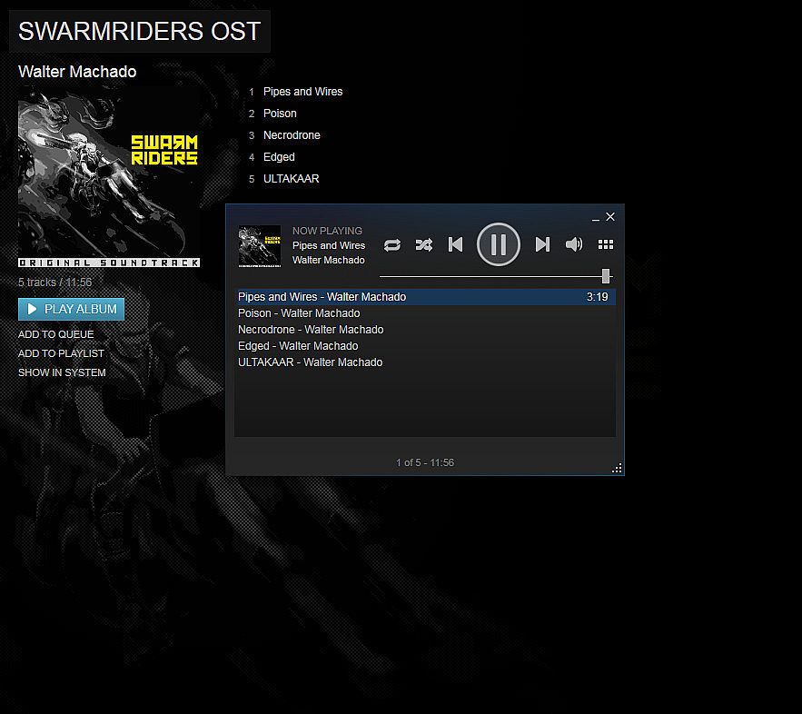 Before you start looking for a cheap SWARMRIDERS: Original Soundtrack CD Key, take a moment to check the essentials. Developed by Walter Machado. PC released date: 07 Sep 2016. Genres: Action, Indie. Categories: Single-player, Downloadable Content, Full controller support.