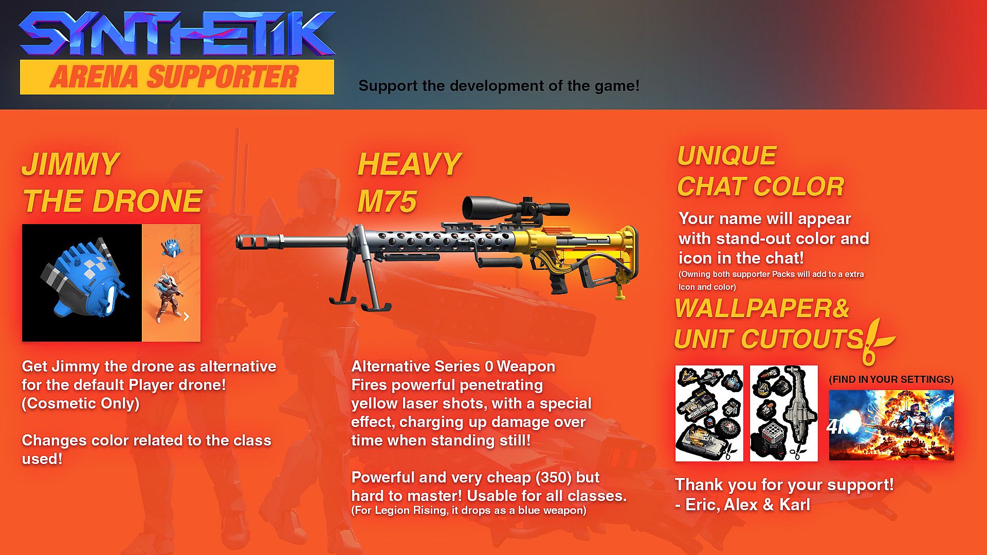 (The Synthetik: Legion Rising supporter pack is also compatible with Synthetik: Arena)