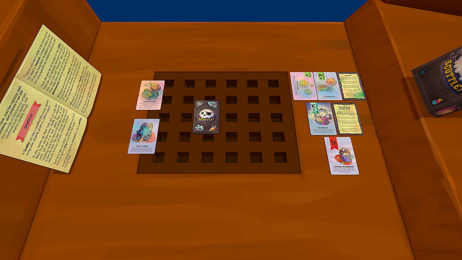 Scuttle! is a card game for 1-5 valiant pirates, suitable for players as young as 6. Based on the classic game Cuttle (believed to be the precursor to Magic: The Gathering), Scuttle! has been infused with the drama of the high seas thanks to creative updated rules by Peter C. Hayward. With gorgeous, adventurous art by Kelly Jo, Scuttle! is fun for the whole family.