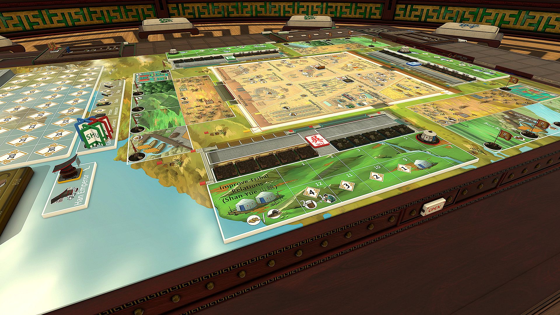 Three Kingdoms Redux is a board game that seeks to recreate the tripartite between the states of Wei, Wu and Shu. You assume the role of one of the three lords – Cao Cao leading Cao Wei, Sun Jian leading Eastern Wu or Liu Bei leading Shu Han. Players start the game from asymmetrical positions, reflecting the manpower advantages Wei enjoyed in the early part of the period. The weaker states of Wu and Shu protect themselves by forming an alliance.