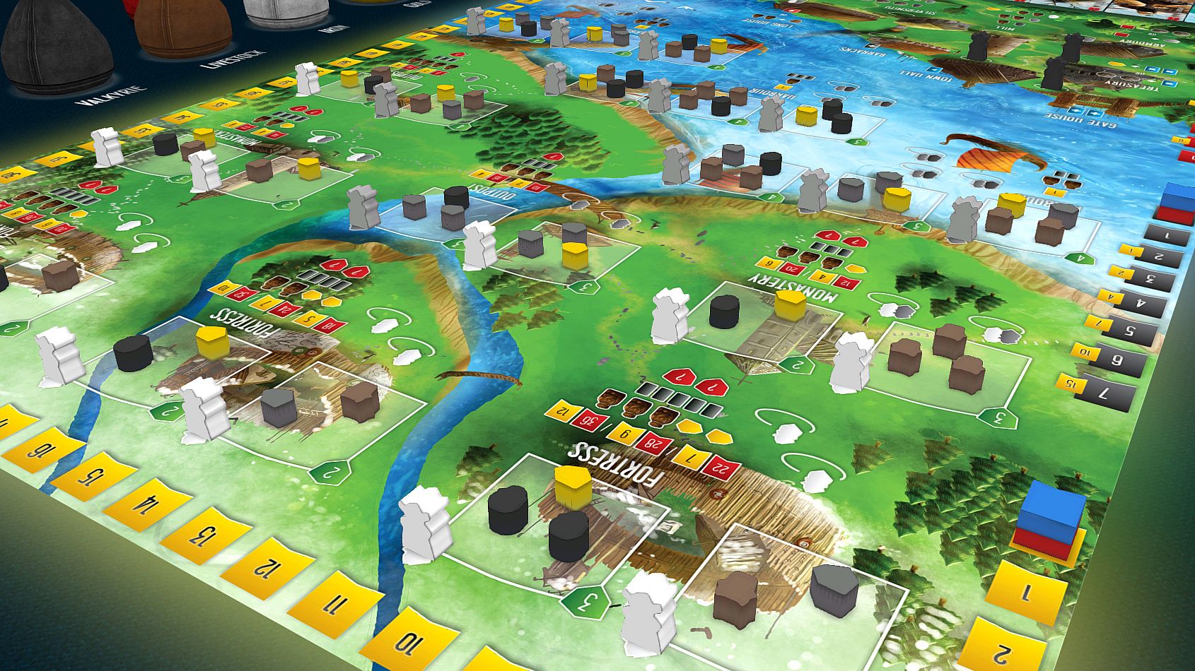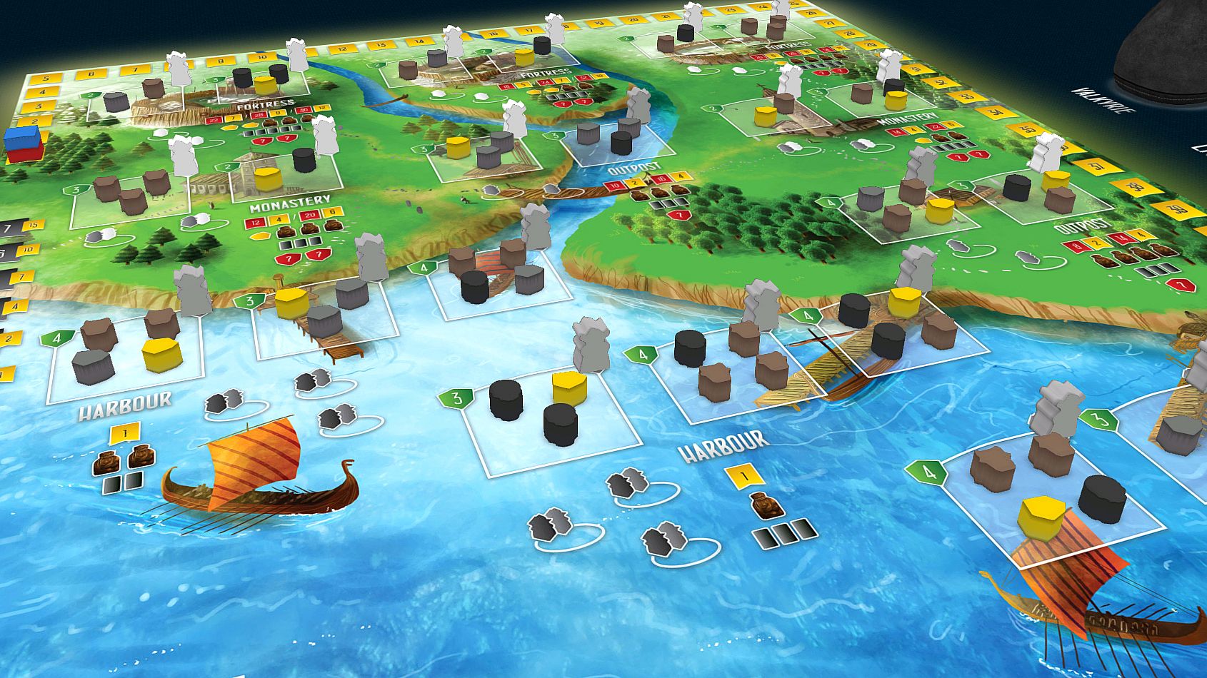 The aim of Raiders of the North Sea is to impress the Chieftain by having the most Victory Points at the game’s end. Victory Points are gained primarily by raiding Settlements, taking Plunder and making Offerings to the Chieftain. How players use their Plunder is also vital to their success. The game ends when either 1 Fortress raid remains, all Valkyrie are removed, or all Offerings have been made.