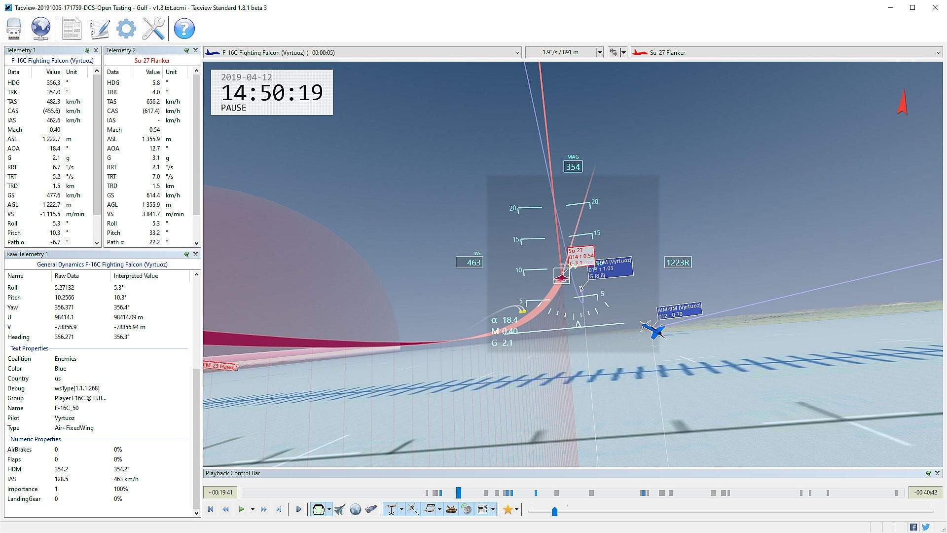 You need more detailed aircraft status reports? Tacview Standard is not limited to basic telemetry: It can support and display any kind of telemetry. Even unknown data can be supported, displayed and analyzed! From the landing gear position to radar locks, you will not miss any information.