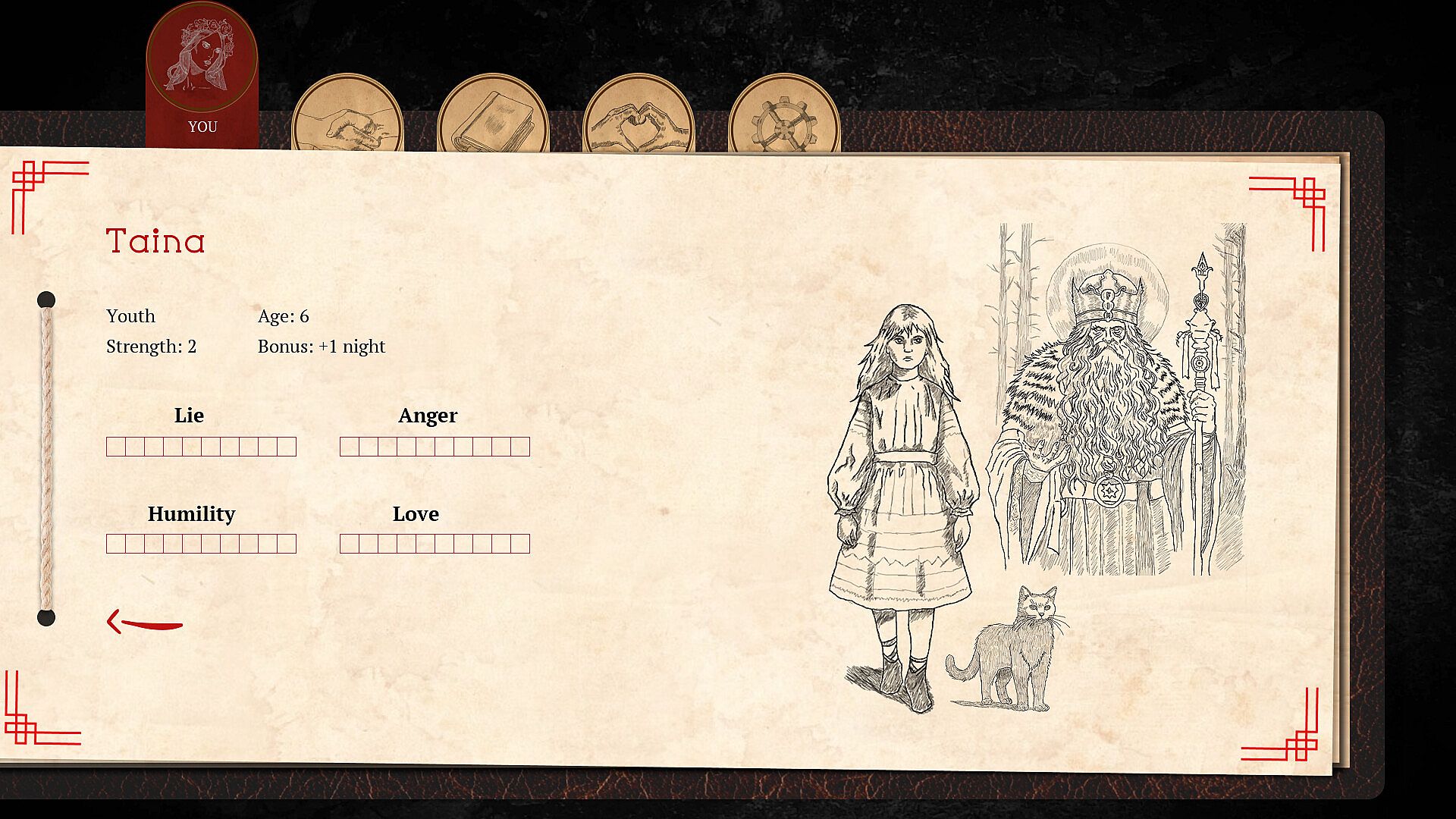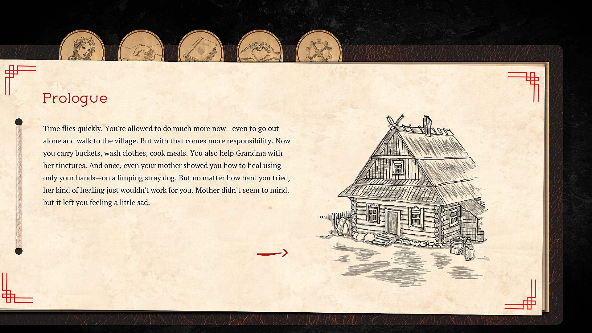 Fate casts its dice—and I see. I see that you'll take on the role of a girl. Hair like fire, born in a black hut near the graveyard. It's no easy role, and your choices are many: will you be kind and gentle, or wild and willful? Will you serve others, or seek only your own gain? Or maybe you’ll walk a third path… Time will tell. Your fate is yours alone. It depends on you—and your strength.