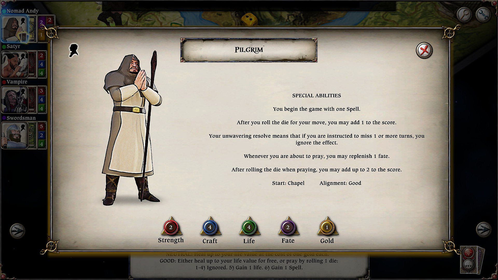 Purchase this character pack to add the Pilgrim to your character collection. He is then available to choose in all game modes. Please note that this character is not included in the Talisman: Digital Edition Season Pass.