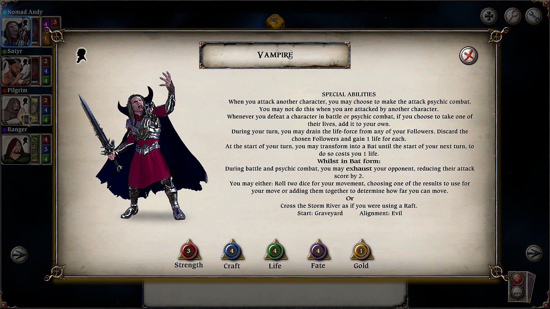 Talisman Character - Vampire - about the game