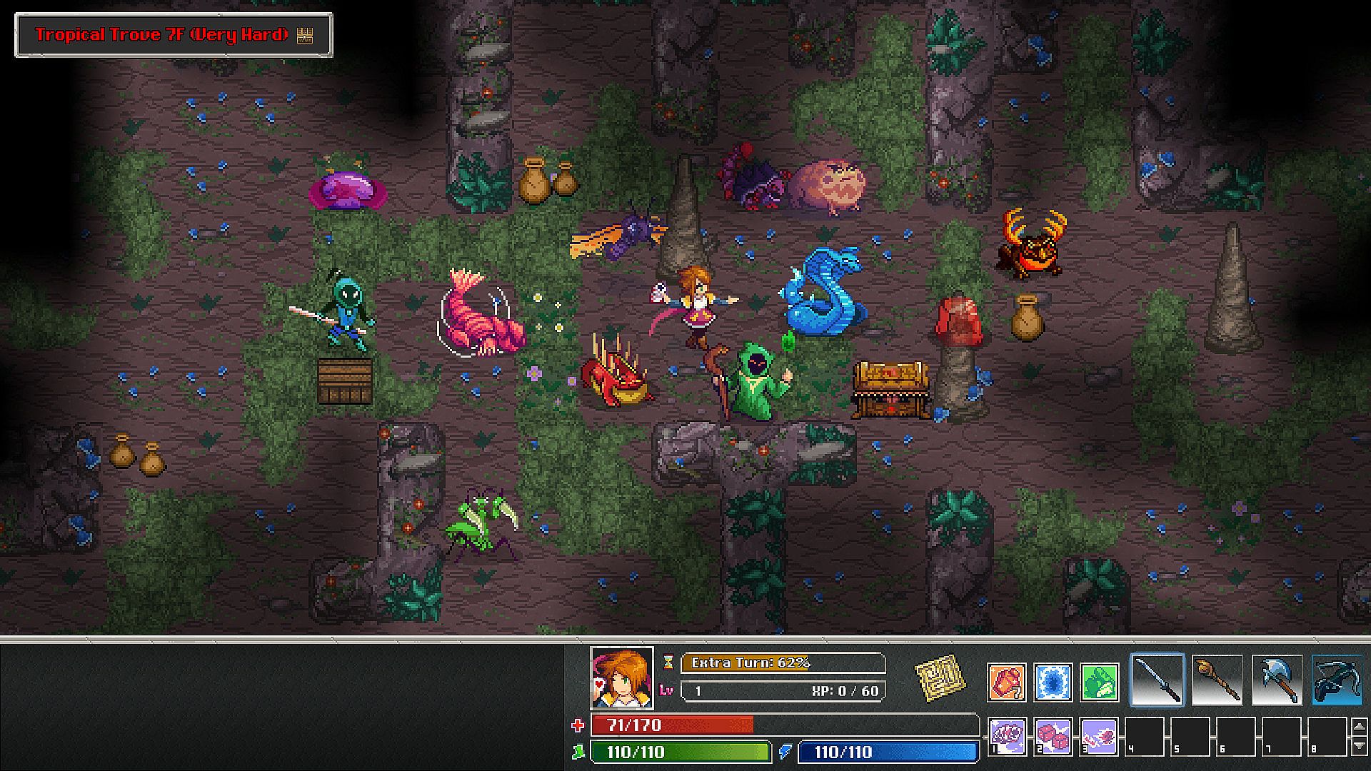 Unlike the rest of the game, every Journey has a completely new set of randomly-generated monsters, complete with accompanying names, sprites, and powers. You’ll have to observe these new threats carefully; you never know what you might find!