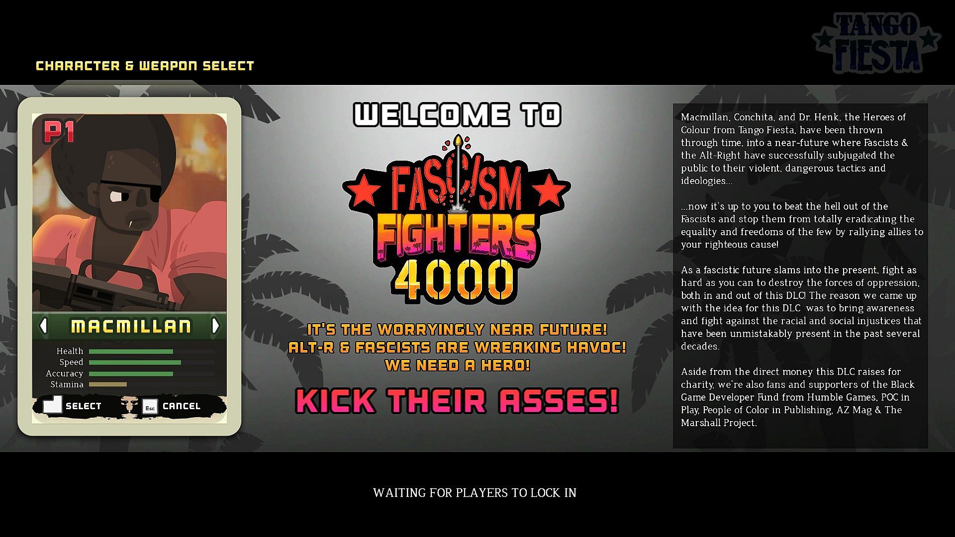 Before you start looking for a cheap Tango Fiesta - Fascism Fighters 4000 CD Key, take a moment to check the essentials. Developed by Spilt Milk Studios Ltd. Published by Spilt Milk Studios Ltd. PC released date: 28 Oct 2020. Genres: Action, Indie. Categories: Family Sharing, Single-player, Downloadable Content, Remote Play on TV, Full controller support, Steam Leaderboards.