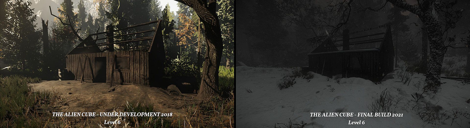 • Screenshots of under development builds of The Alien Cube compared to the final version.