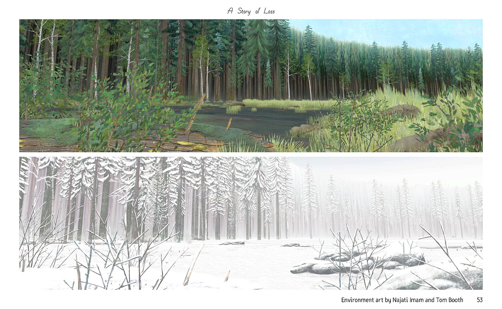 The Art of Pine is a beautiful art book containing over 100 pages of artwork from Pine: A Story of Loss, featuring art by Tom Booth. See characters, environment art, animation roughs and more as you explore the creation of the game's art.