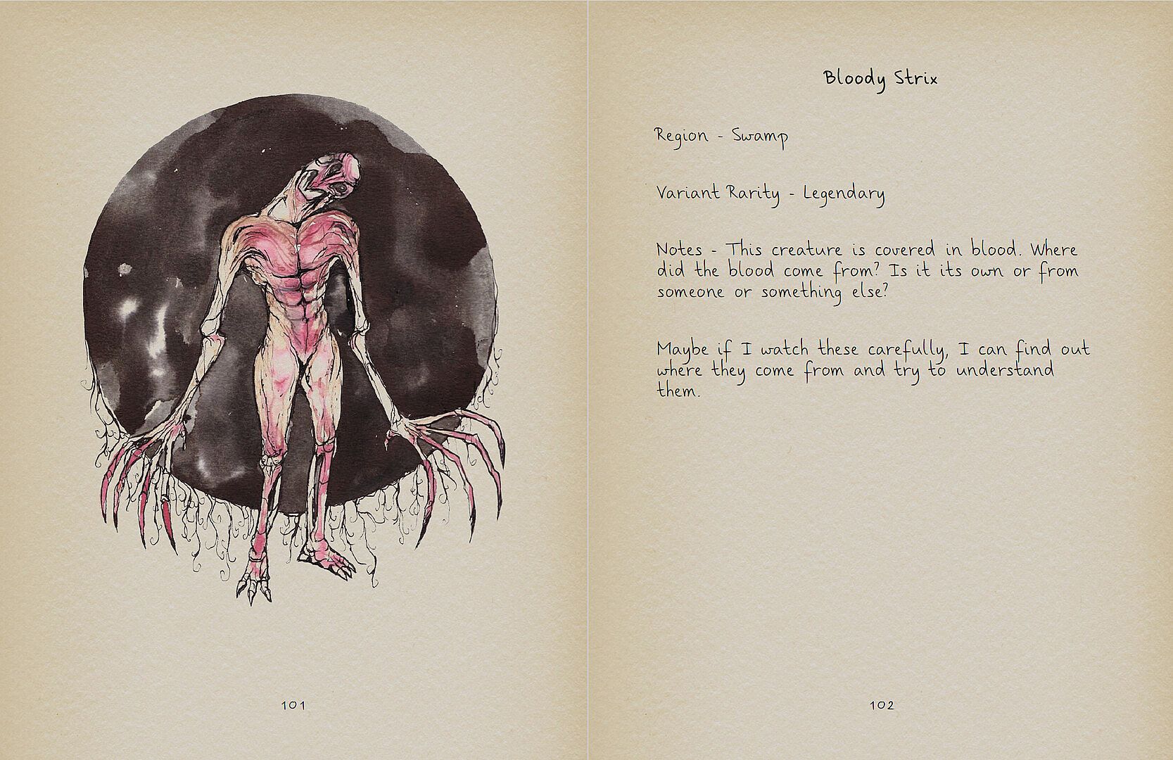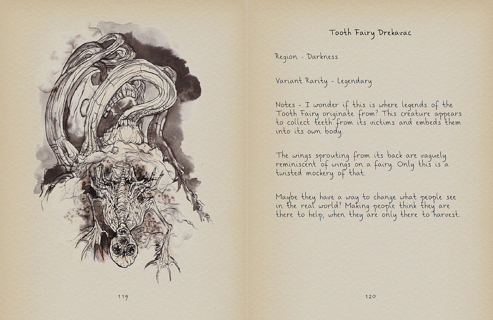 It contains 441 pages of content including 72 monsters and hundreds of pages of journals from various people throughout time who have been in the world of The Axis Unseen.