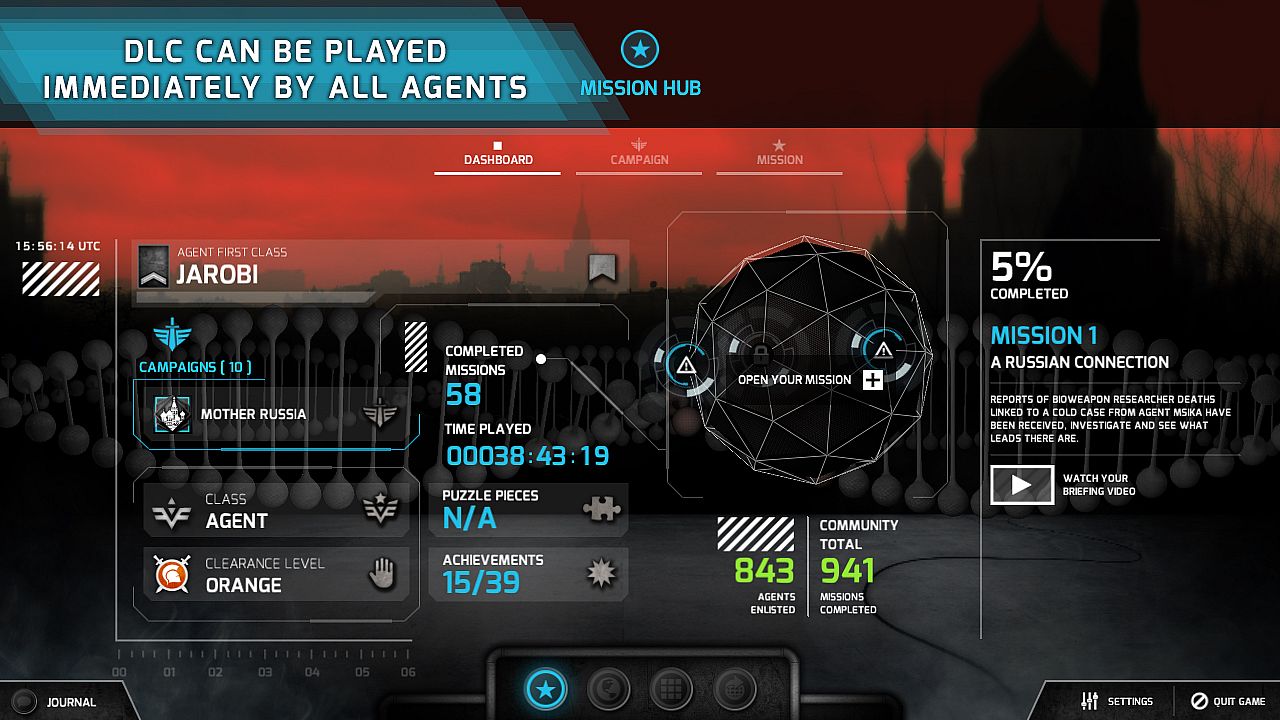 Здравствуйте Agent, an urgent operation is being planned and requires your support. In the Mother Russia DLC, you’ll need to complete an all new in-client mission set [15 puzzles] that brings you through the cold case files of Agent Msika and the circumstances surrounding her disappearance.