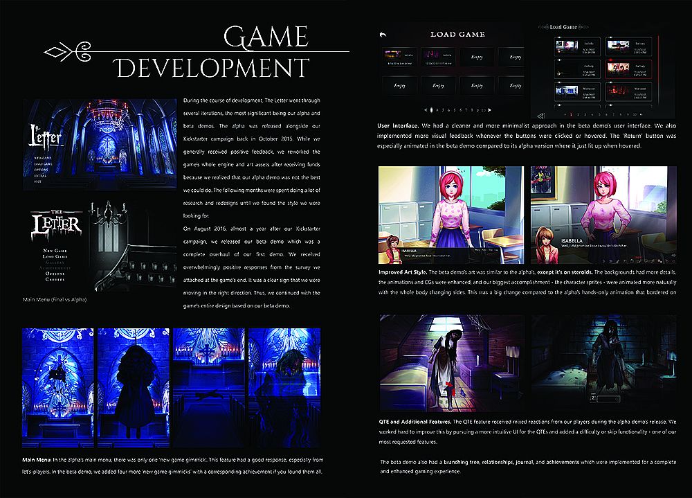 Take a sneak peek into The Letter's production with this 185-paged digital artbook! Whether you're a fan of the game or a fellow developer, you'll surely enjoy and learn from the thoughts and experiences we've shared in this book!