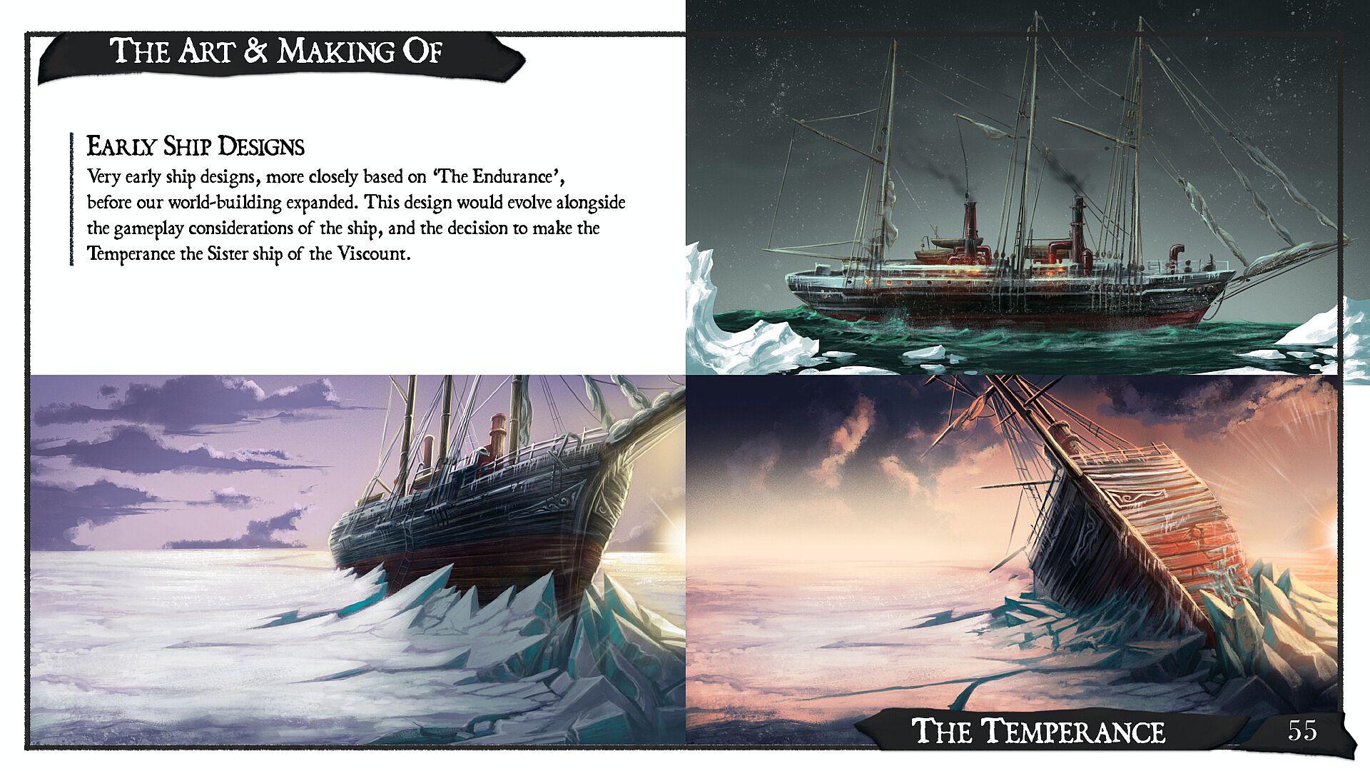Featuring character art, ship design, environment art (and the sled dogs!) by Jess Campbell, Katie Noble, Ethan Mclean and Nadine McLaughlin, the book offers insights on the development and an intimate look at the Temperance and her crew.