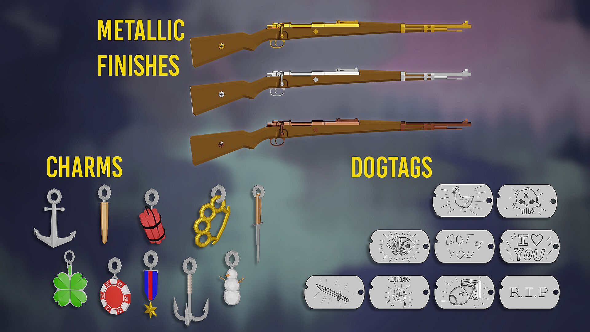 - Ten weapon skins