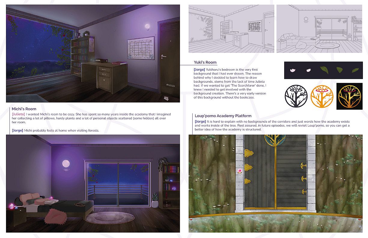 In the 'The Scorchfarer Artbook', you will be able to find all of the assets that were used during the creation of the first episode: The Wanderer and the Anchor. Character sketches, background creation process and concept art from the early days of development can be found in this artbook. It also includes development commentary of how the world of 'The Scorchfarer' came to be.