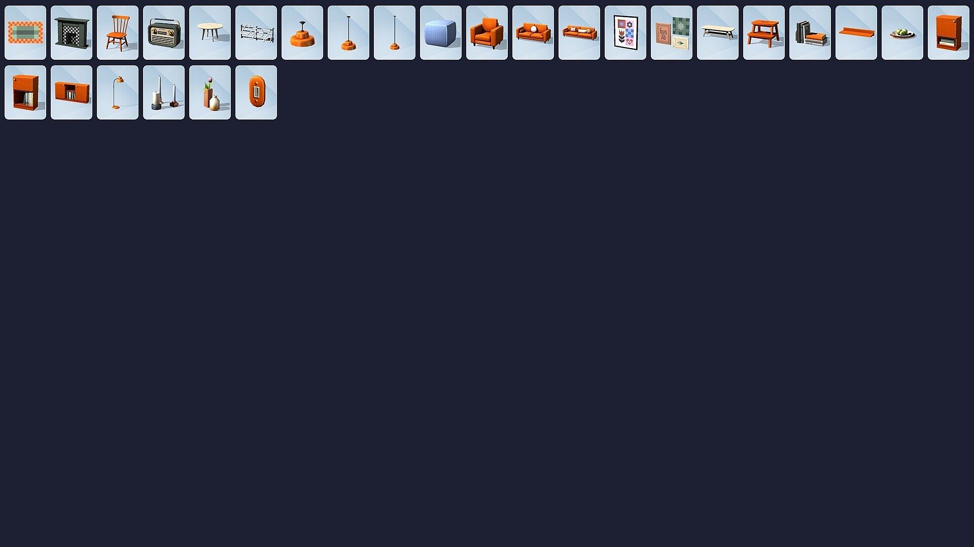 Embrace vibrant colors and mid-century modern design with The Sims™ 4 Cozy Kitsch Kit. Inspired by the 60s and the 70s, this collection of living room items features bold color and pattern combinations, stylish surfaces, and cute décor with delightful character. Add subtle accents to your room, or make a statement with every piece. Created by myshunosun.