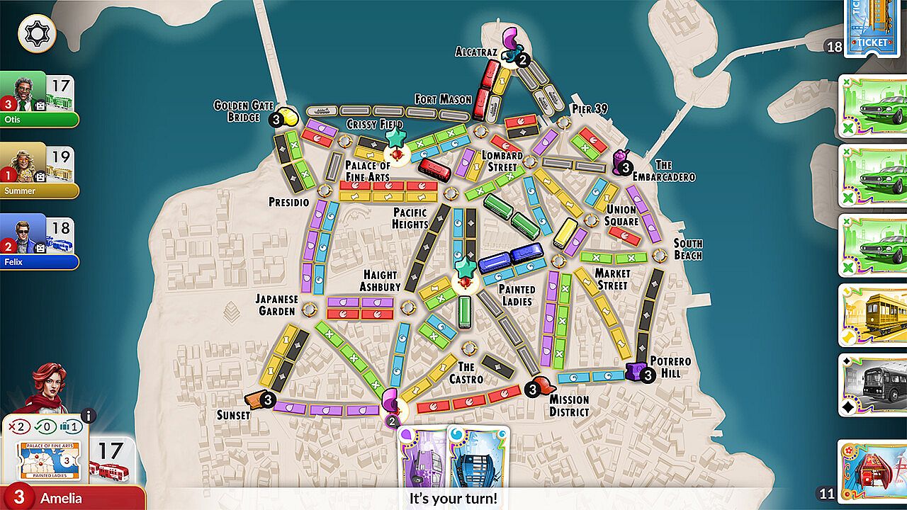 Plus, to celebrate San Francisco coming to the video game version of Ticket to Ride for the first time, we’re giving away a free bonus token to every player – with or without the San Francisco City Expansion!
