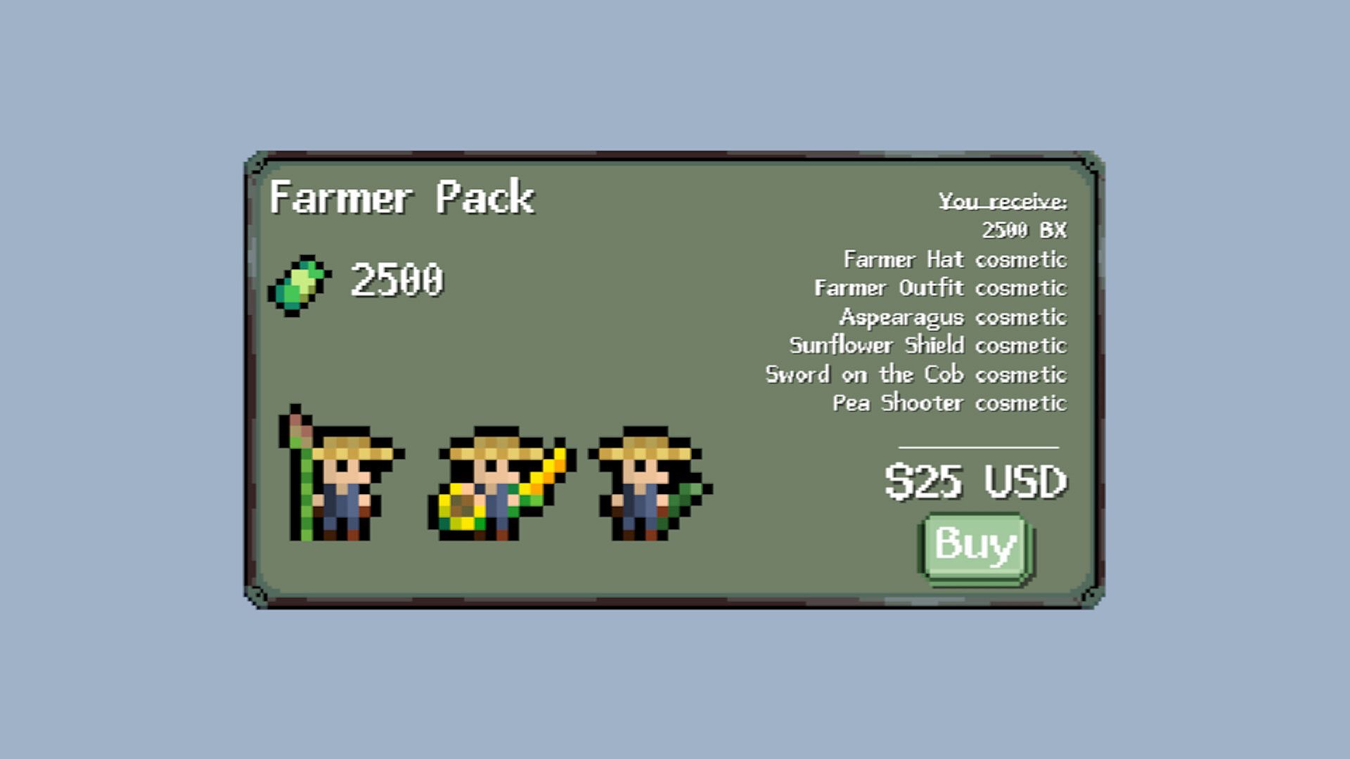 This indie RPG thrives in its massively multiplayer setup, where such bundles enhance your presence among fellow players. Gear like the Pea Shooter and Sunflower Shield equips you for shared adventures. MMO fans who enjoy collecting themed sets in RPG worlds find a solid fit here.