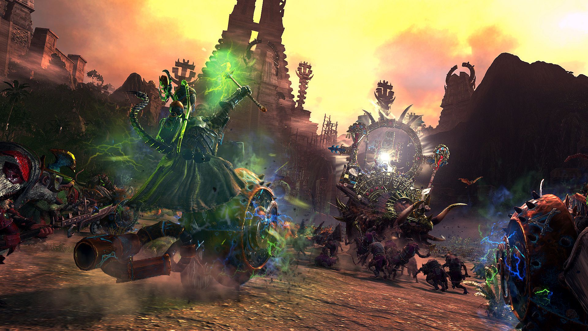 • Play as Clan Skryre (Skaven) or the Cult of Sotek (Lizardmen) with unique new campaign mechanics
