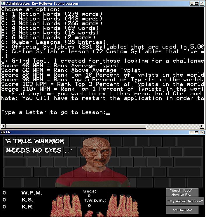 Touch Typing Home Row Speed Grinder - iReact Freddy Krueger Nightmare Custom Art Keyboard - about the game