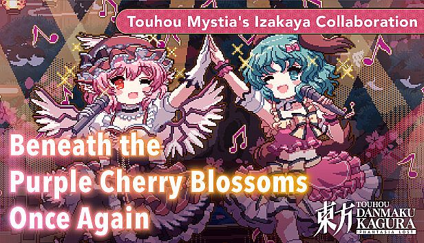 This collaboration brings a fresh track from Touhou Mystia's Izakaya into Touhou Danmaku Kagura Phantasia Lost. Players access the in-game music "Beneath the Purple Cherry Blossoms Once Again," drawn from the restaurant simulator hit. The added content lets you play this nostalgic piece right in the action-packed rhythm experience. Fans of indie casual adventures and free-to-play action games enjoy the seamless music integration. It revives familiar sounds for those who cherish the original track. This update targets Touhou enthusiasts seeking quick, accessible gameplay loops centered on rhythm challenges.