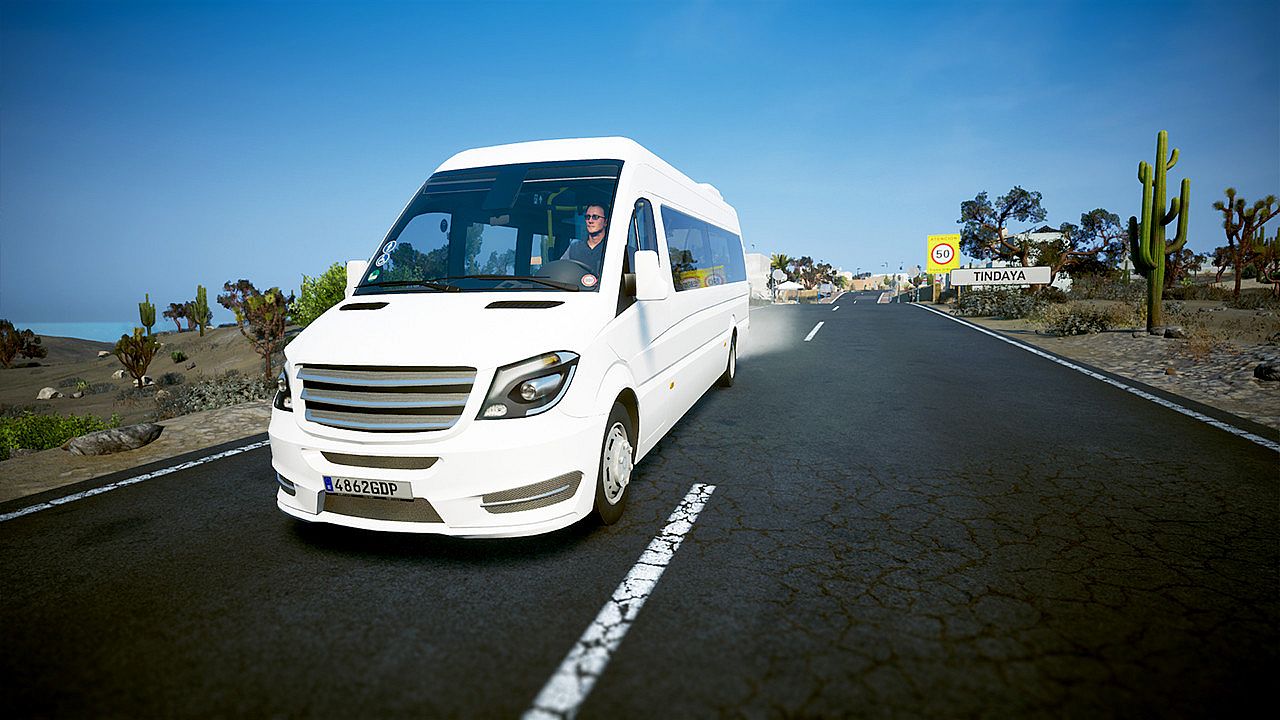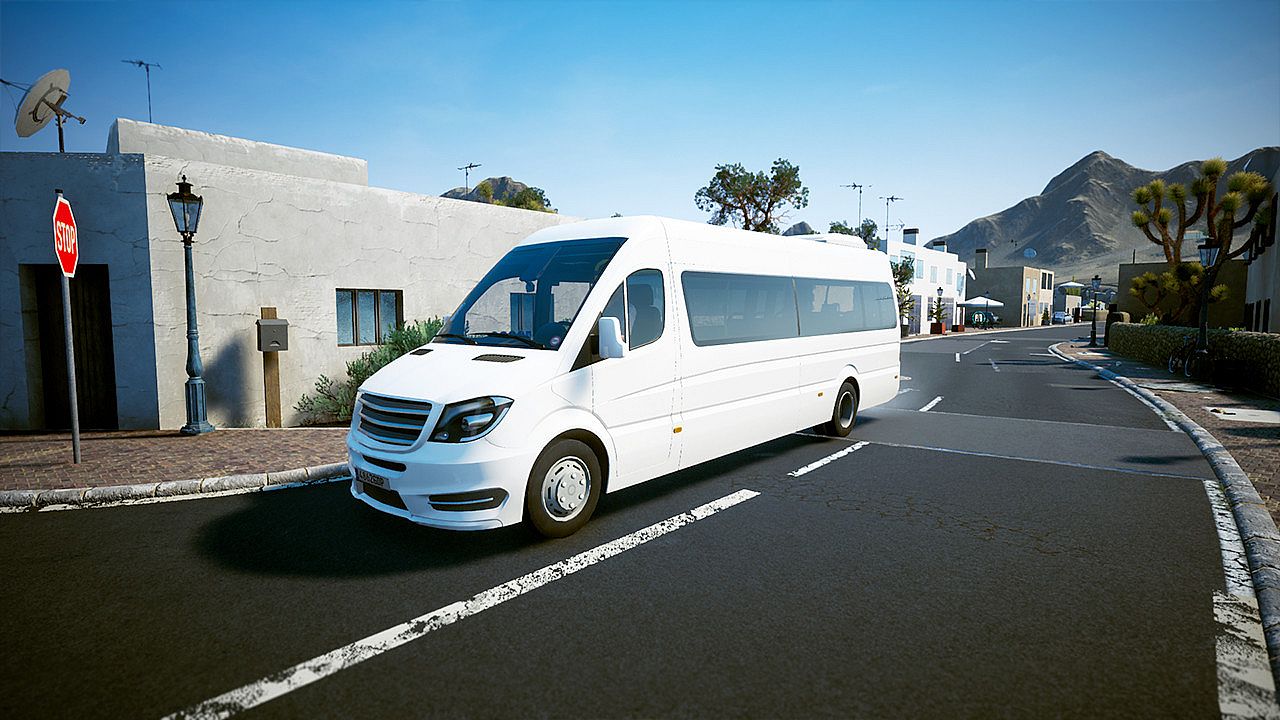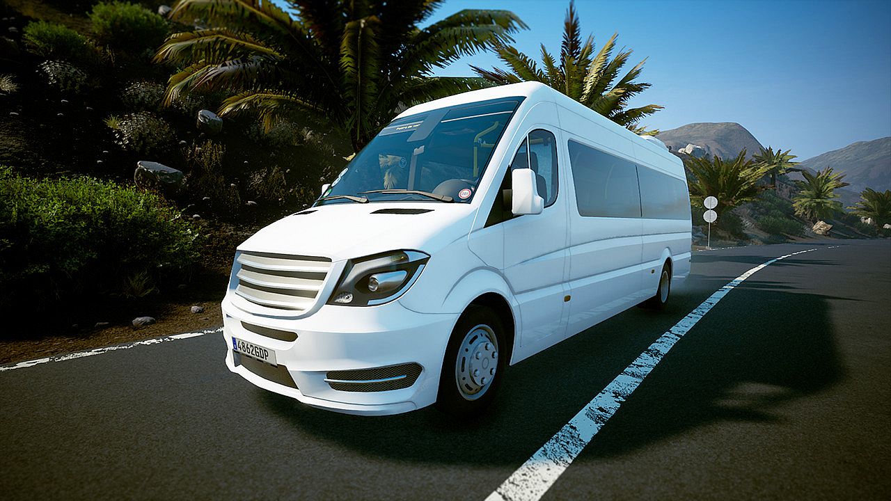 Drive the W906 minibus in Tourist Bus Simulator, a casual simulation that puts you behind the wheel of a reliable fleet vehicle for passenger transport. This top-class model handles short trips through European metropolitan areas, narrow island streets, or daily urban routes with a 5-speed automatic transmission and speeds up to 155 km/h. Passengers enjoy 19 seats and improved travel comfort in varied applications. The detailed cockpit offers interactive controls like wipers, doors, retarder, cruise control, air conditioning, WiFi, radio, lights, driver's window, and sunblind. Monitor speed, gear, time, temperature, fuel, navigation, and reversing camera from multiple perspectives. Simulation fans who value functional vehicle details and community Steam Workshop paint jobs will appreciate this economical entry-level addition.