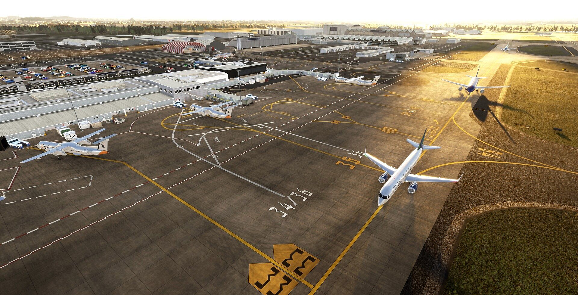 • Stands 19–20, 70–73, 82–84, and 74–81 are remote parking spots for planes.