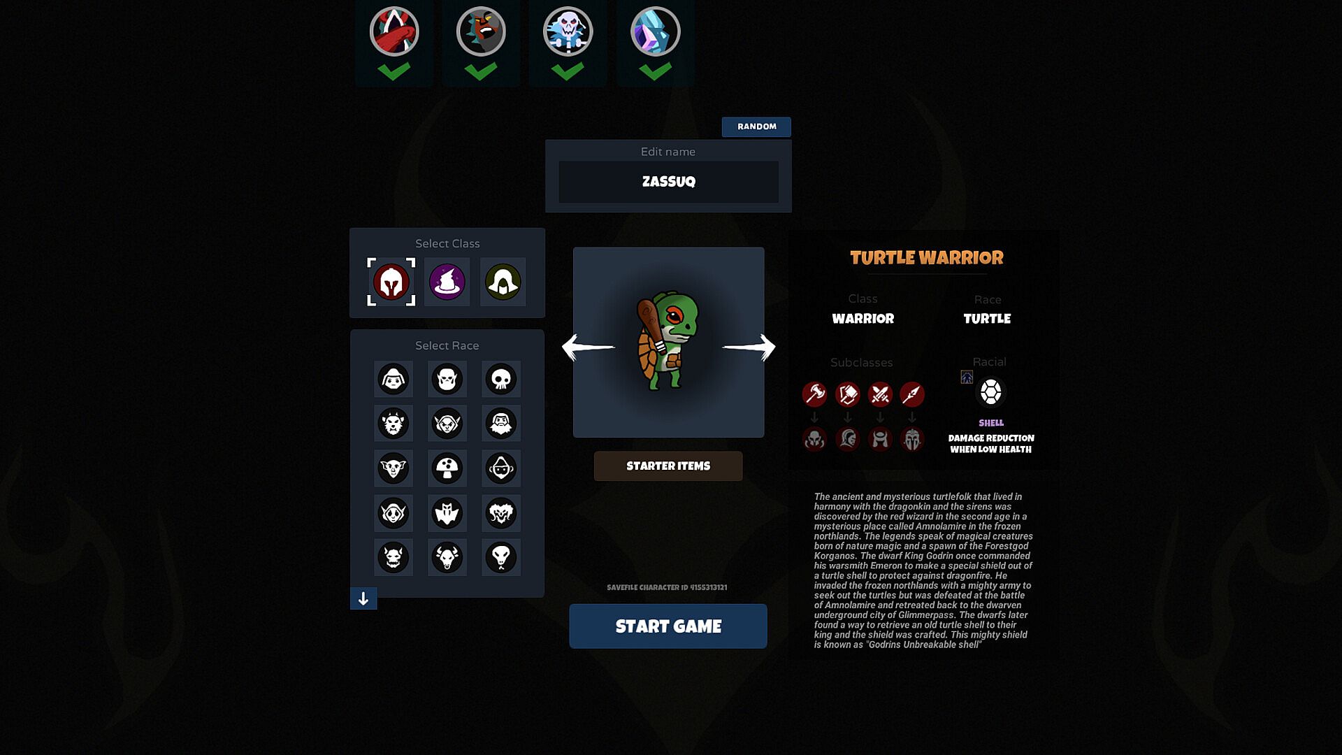 The ancient and mysterious turtlefolk that lived in harmony with the dragonkin and the sirens was discovered by the red wizard in the second age in a mysterious place called Amnolamire in the frozen northlands. The legends speak of magical creatures born of nature magic and a spawn of the Forestgod Korganos. The dwarf King Godrin once commanded his warsmith Emeron to make a special shield out of a turtle shell to protect against dragonfire. He invaded the frozen northlands with a mighty army to seek out the turtles but was defeated at the battle of Amnolamire and retreated back to the dwarven underground city of Glimmerpass. The dwarfs later found a way to retrieve an old turtle shell to their king and the shield was crafted. This mighty shield is known as "Godrins Unbreakable shell".
