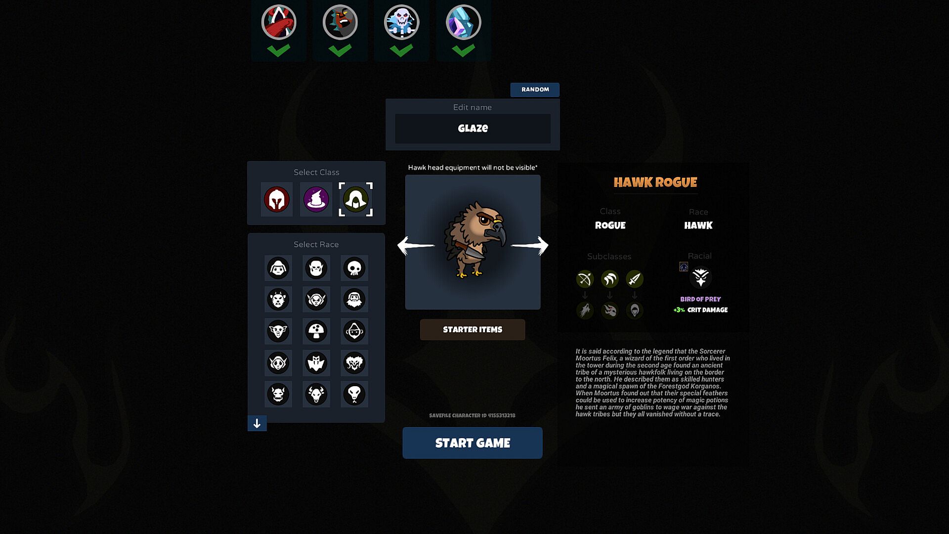 It is said according to the legend that the Sorcerer Moortus Felix, a wizard of the first order who lived in the tower during the second age found an ancient tribe of a mysterious hawkfolk living on the border to the north. He described them as skilled hunters and a magical spawn of the Forestgod Korganos. When Moortus found out that their special feathers could be used to increase potency of magic potions he sent an army of goblins to wage war against the hawk tribes but they all vanished without a trace.