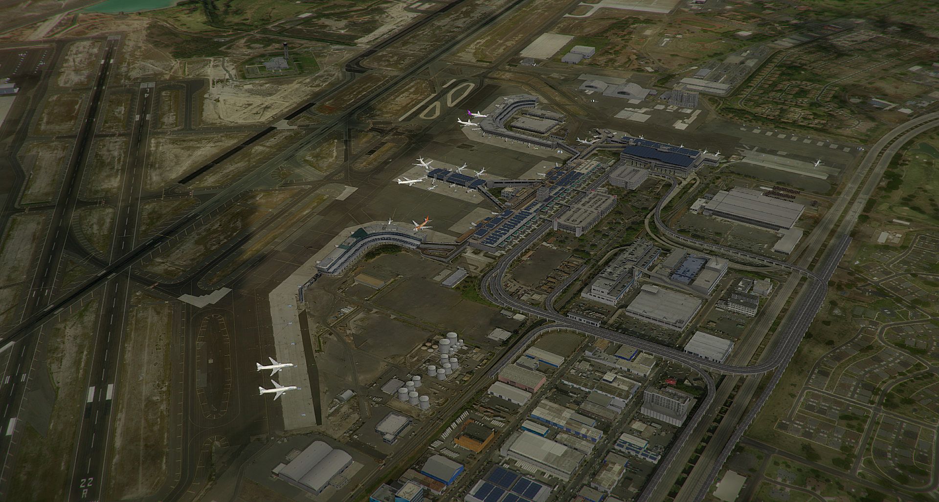 The airport has four major runways, which it operates in conjunction with the adjacent Hickam Air Force Base. The principal runway designated 8R/26L, also known as the Reef Runway, was the world's first major runway constructed entirely offshore.