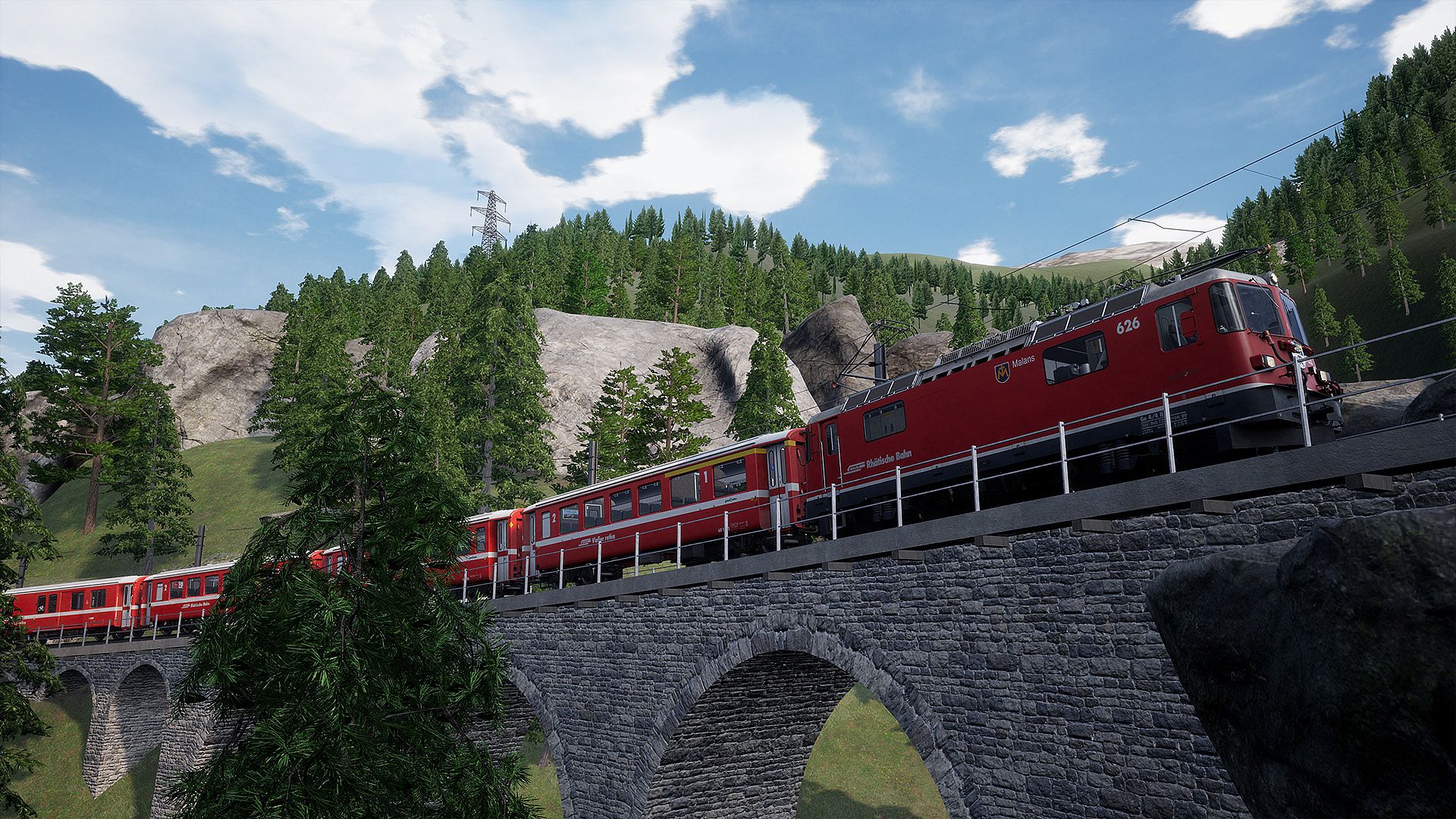 Take control of the classic RhB Ge 4/4 II electric locomotive, manage your speed and stick the timetable as you climb or descend over a kilometre in elevation, slowly drive through the streets of Chur and marvel at the grand Langwieser Viaduct.