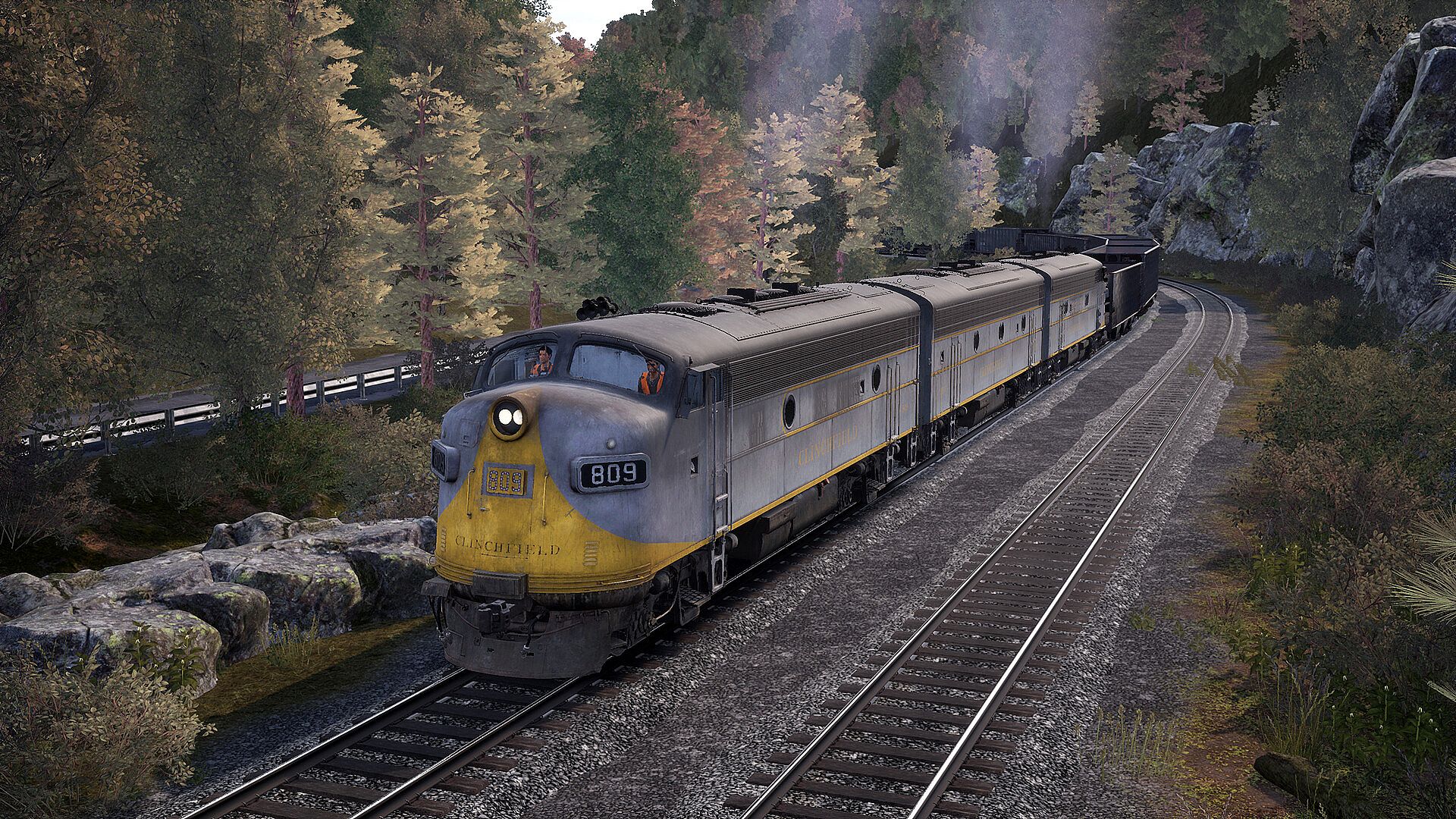 Take control of the instantly recognisable EMD F7 diesel locomotive, dressed in the vibrant and coal dust-coated Clinchfield Railroad livery. Step into the cab of the A unit, while the B unit offers additional horsepower for the heaviest of freight duties. Alternatively, get a taste of something then-new, the EMD SD40, before its more recent upgrades to become the loco that exists today.