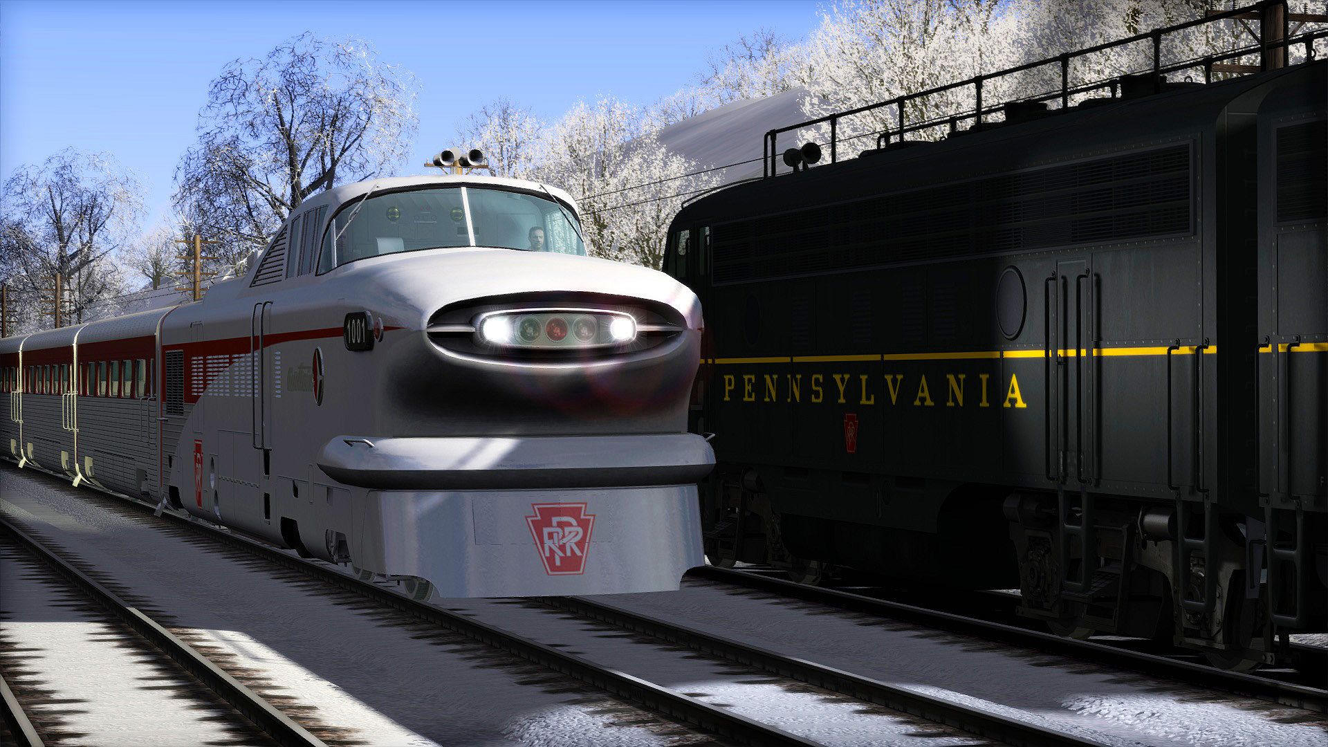 Created for Train Simulator by DTM, the complete Aerotrain (LWT12 locomotive, coach, and coach-observation) is authentically re-created wearing the Pennsylvania Railroad’s famed “Keystone” logo, making it perfect for service on Train Simulator’s classic Horseshoe Curve route (available separately). And the Aerotrain pack also includes a version of the iconic train in standard demonstrator livery ideal for operation on a wide variety of Train Simulator routes.