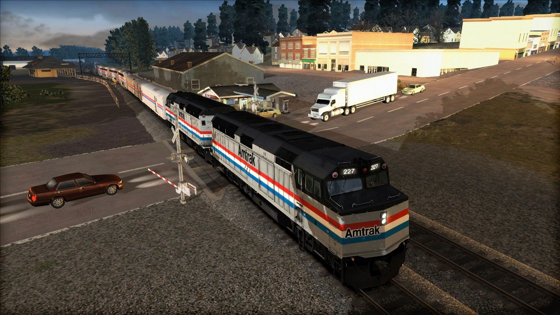 The F40PH for Train Simulator recreates the Amtrak Phase III colour scheme and includes Amtrak Super-Liner Phase II and Phase III passenger cars including coach, diner and sleeper, and baggage cars. Drive the included scenarios for the Donner Pass (also available on Steam) or select Quick Drive and drive the F40PH wherever you want.