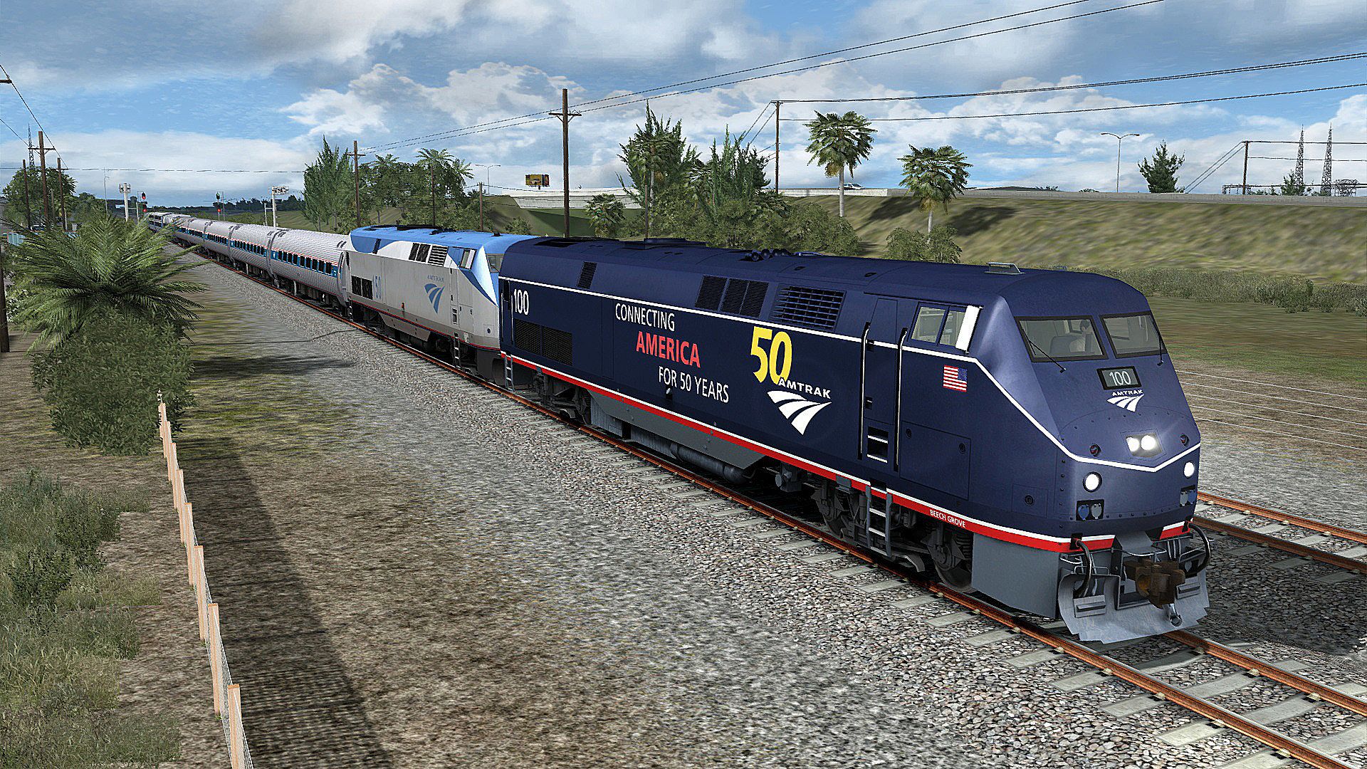 Four career scenarios featuring the Amtrak 50th Anniversary diesels on the Train Simulator Miami-West Palm Beach route (route available separately) are included: