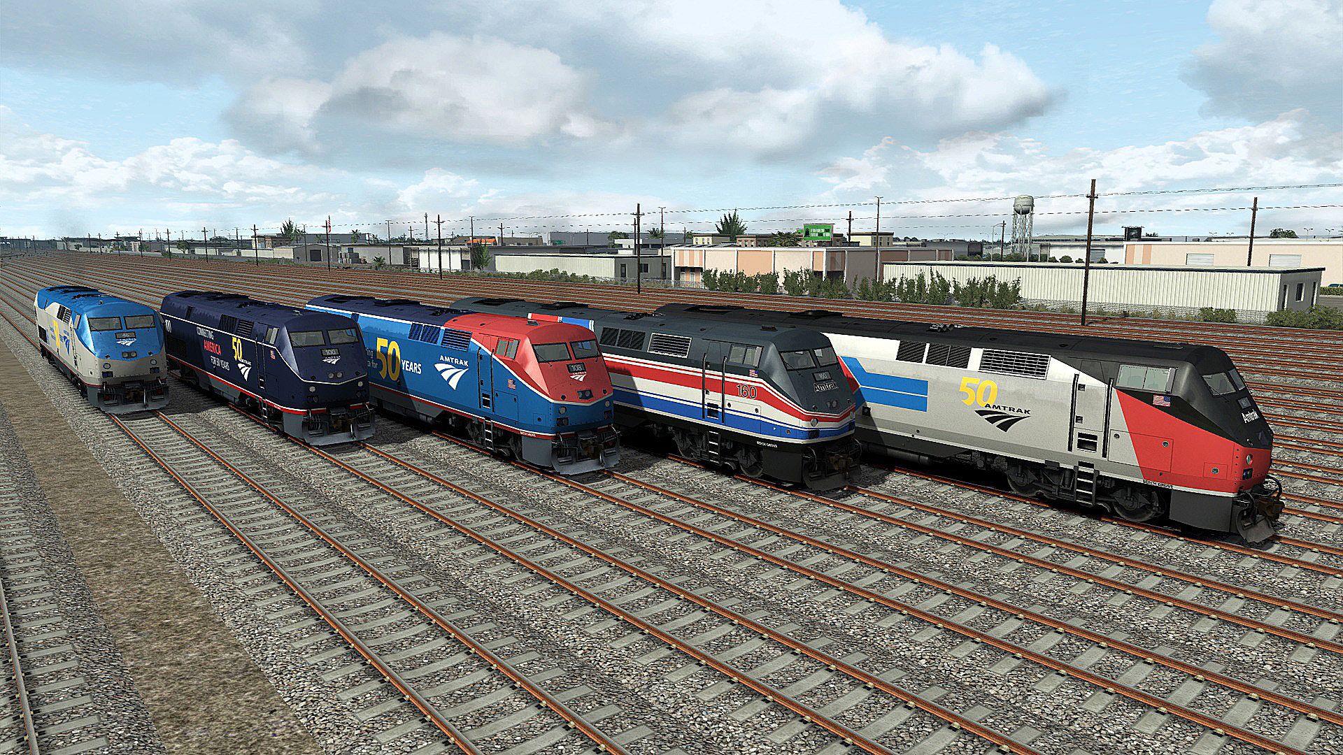 Five of Amtrak’s 50th Anniversary commemorative locomotives are General Electric P42DC diesels, the stylish and powerful 4,200-horsepower diesel that has served as the standard-bearer of Amtrak diesel-powered services over the past quarter-century -- and Train Simulator’s popular P42DC is dressed in each of the five striking and historic schemes.