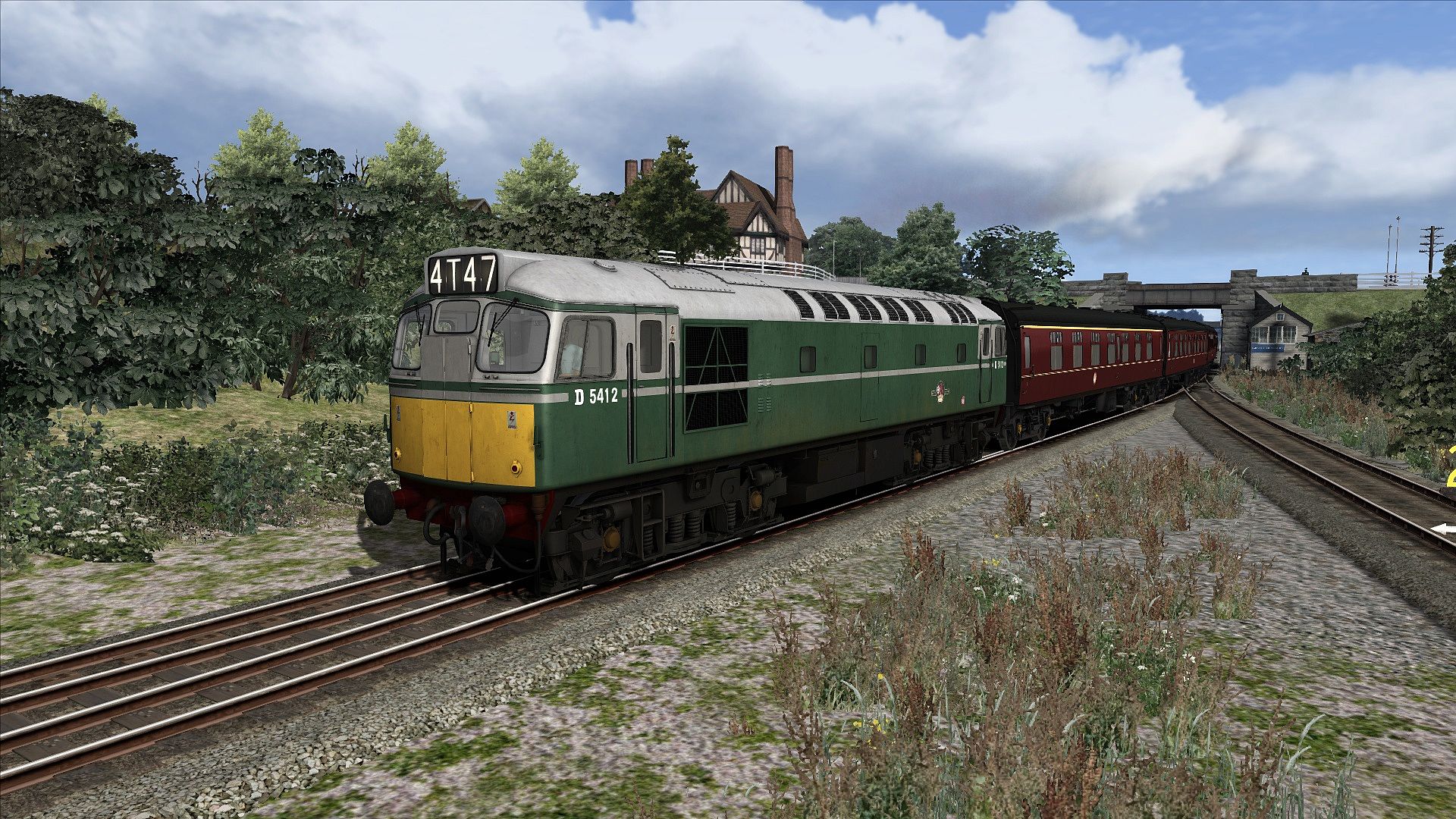 The Class 27 for Train Simulator is available in British Railways green livery and is a former Iron Horse House model, which has been updated to Train Simulator standard, including new scenarios and improved exterior modelling. Features include engine on/off buttons, AWS sunflower and reset, instrument and cab lighting, and BR Mk1 coaches in maroon livery.