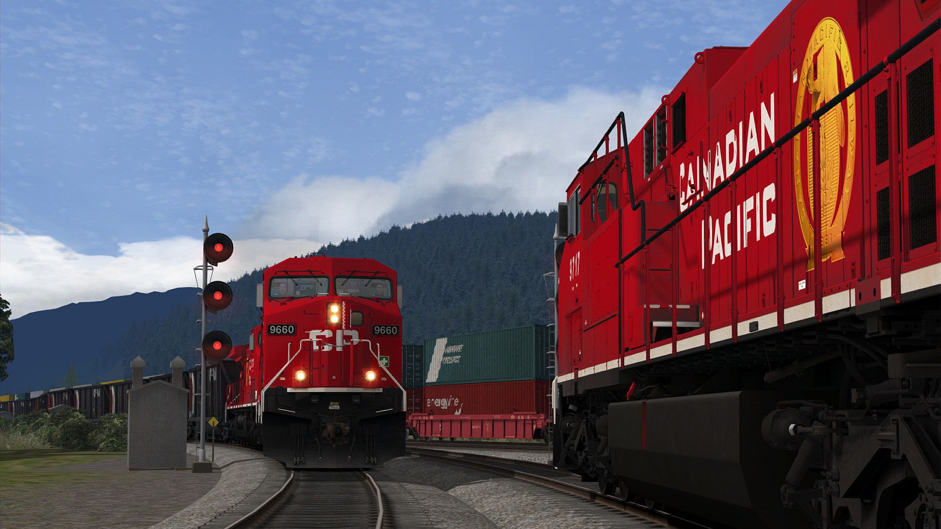 Throttle modulation for good on time performance, dynamic braking and balanced braking for controlled descents, and adverse weather conditions that challenge all of the above will await you on heavy freight drags over the Rockies on Train Simulator’s classic Canadian Mountain Passes: Revelstoke-Lake Louise route (available separately).