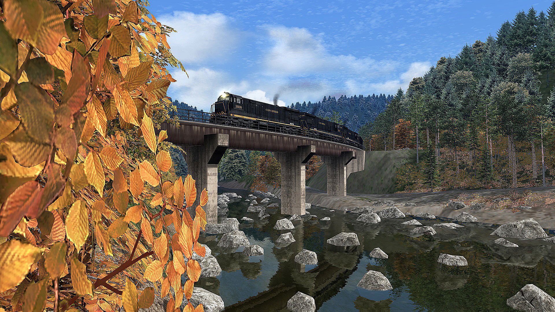 The General Electric U36C for Train Simulator feature realistic details, controls, and sounds. It is dressed in Clinchfield’s final distinctive black-and-yellow livery. Accompanying the U36C in this DLC are a Clinchfield 100-ton, four-bay coal hopper as well as CRR’s noted “Santa Fe” style steel cupola caboose. And the DLC includes three career scenarios that will take you over the length of Train Simulator’s popular Clinchfield Railroad: Elkhorn City - St. Paul Route (route available separately).
