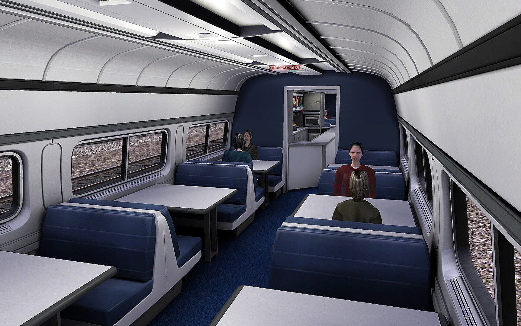 • Amtrak Amfleet I coach and café car in Phase III livery and with detailed interiors