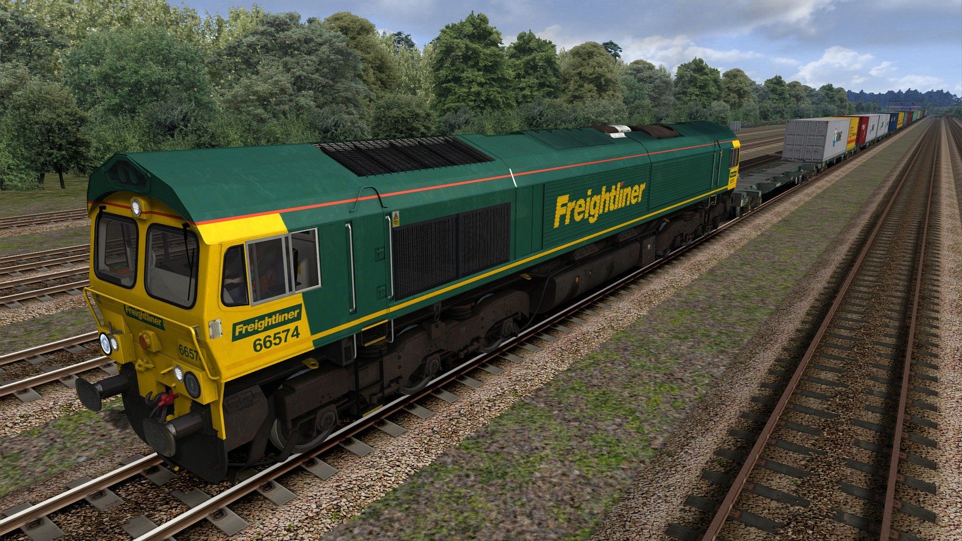 The Freightliner Class 66 V2.0 for Train Simulator is a re-worked model of a previous version, with an updated and improved interior and re-modelled exterior. Available in Freightliner livery, the model features accurate brake control and centre-sprung brake lever, accurate engine and horn sounds, FEA-B Spline and KTA Pocket intermodal container wagons. Scenarios specifically for the Edinburgh-Glasgow route are also included.