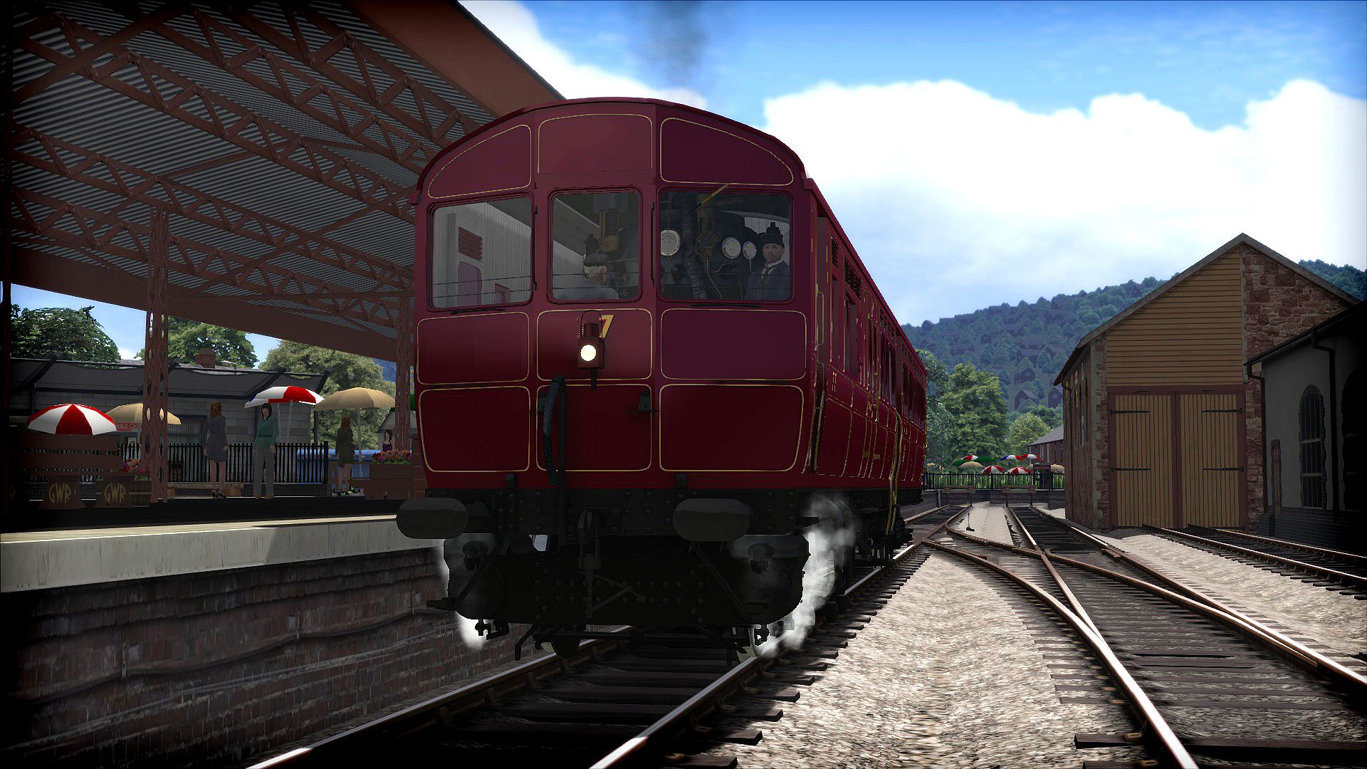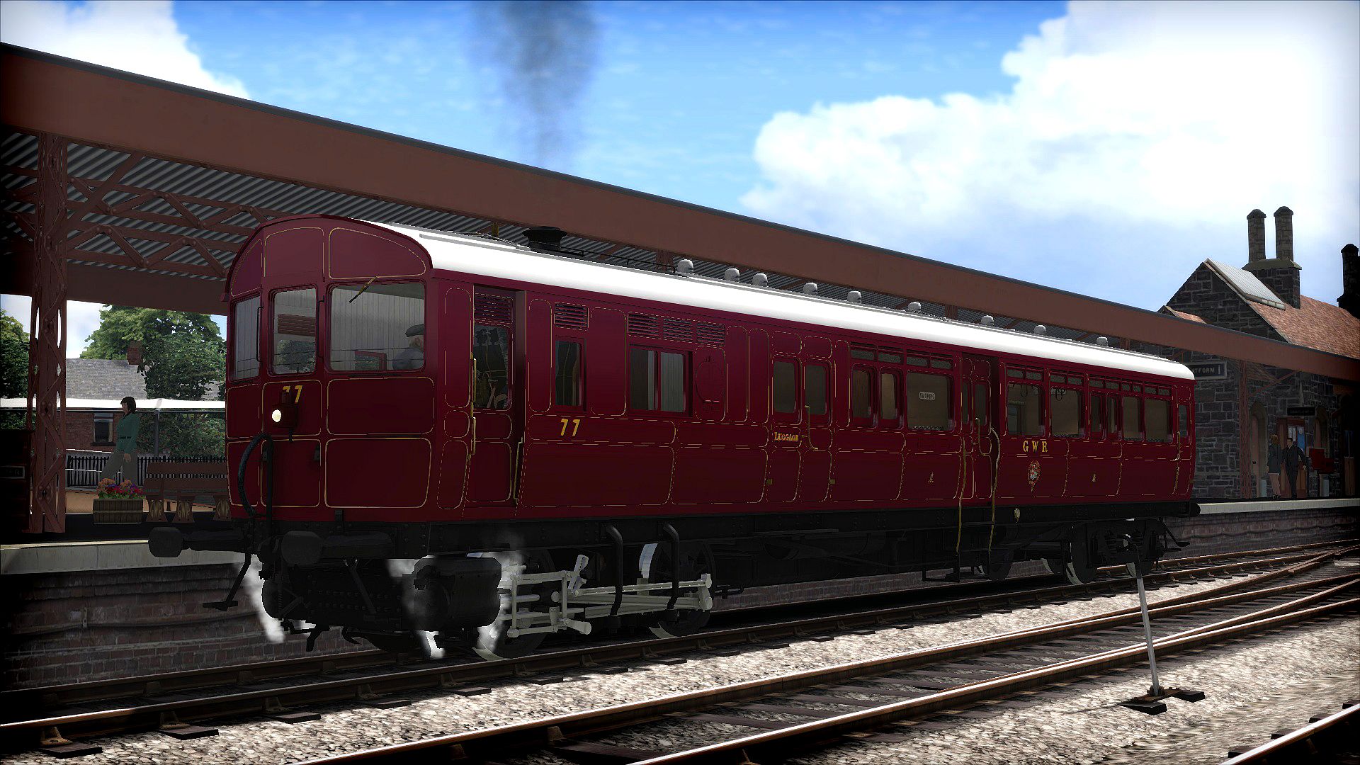 The Steam Railmotor for Train Simulator, developed by Victory Works, is available in Great Western Railway livery and includes a wealth of detailing and features, including three driving modes, simulated steam chest, animated valve gear, opening cab doors, windows and roof hatch, hand operated window wipers, animated steps for ground platform support, passenger view with period passengers suitable for most eras, and refuelling via coal stacks and water hose.