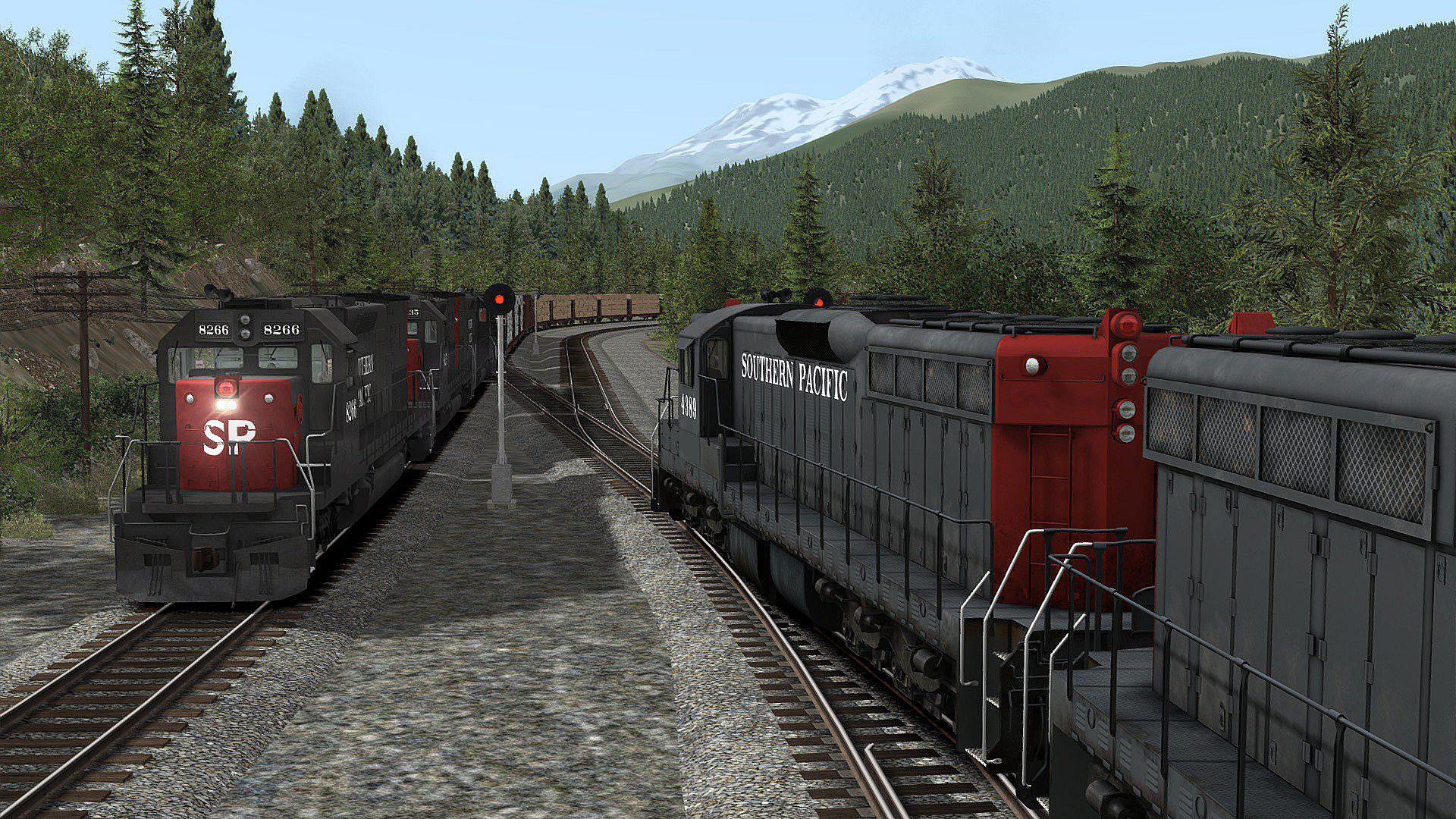 Grueling mountain grades of 2.2 percent, a famed double-horseshoe, heavy lumber and manifest freights, hot intermodals, the magnificent and memorable scenery of Northern California and Oregon, classic diesel power, and legendary Southern Pacific railroading under the gaze of majestic 14,000-foot Mount Shasta – all that and more awaits you with Train Simulator’s Southern Pacific Mount Shasta Route!