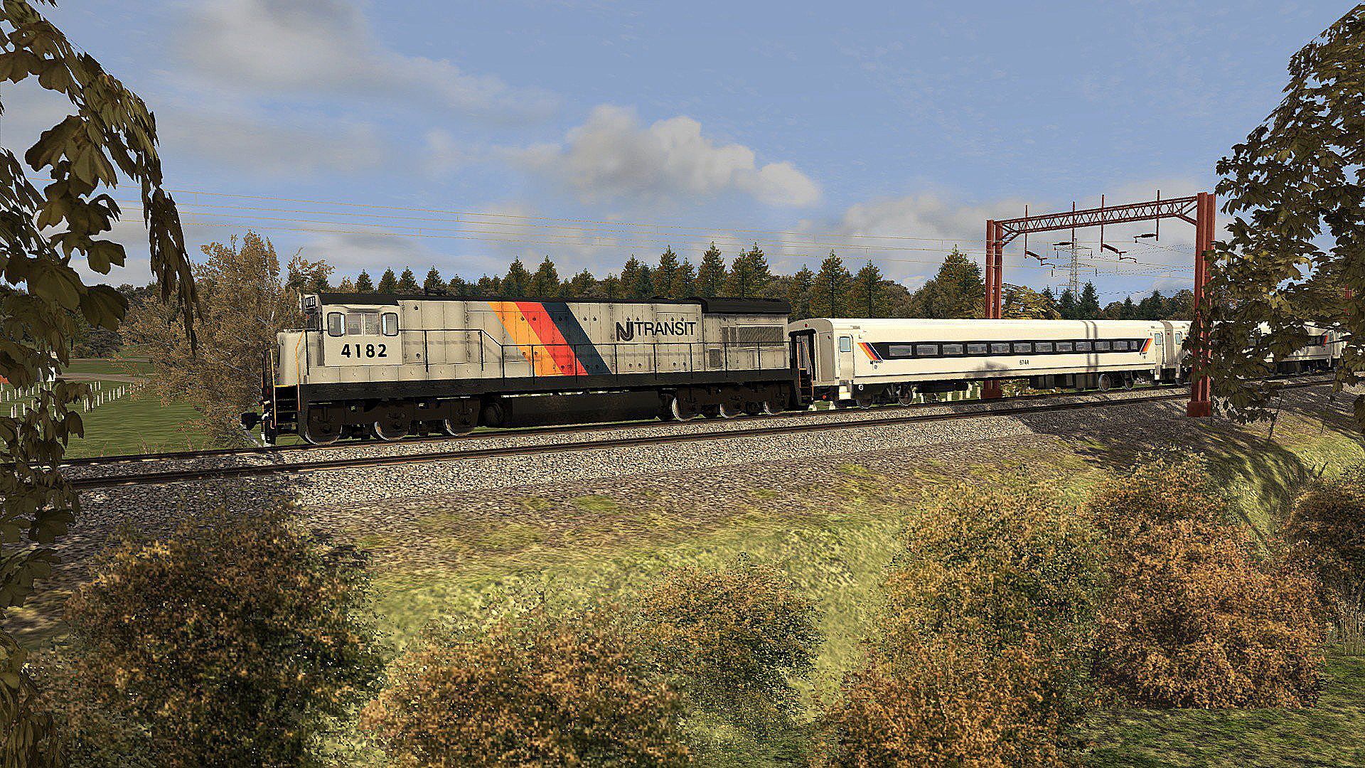 Created by DTM, this Add-On includes the husky GE U34CH diesel in NJ Transit livery accompanied by Pullman-Standard Comet I cab cars and coaches.