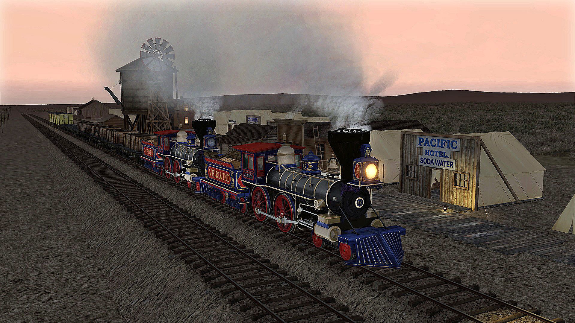 - A variety of beautifully crafted “Old West” assets including stations, water towers, turntables, wooden trestles, and lineside structures