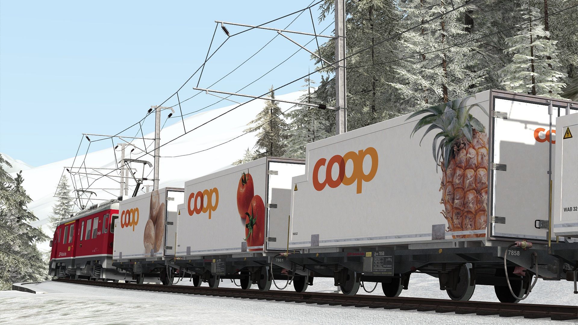 To complement the ABe 4/4 III, the RhB Enhancement Pack 03 also features ten different officially licensed Coop swap body Lb-v wagons for authentic Alpine operations. To bring it all together, the pack is fully quick drive compatible with the Bernina Pass route, and a trio of varied Career scenarios are also included.