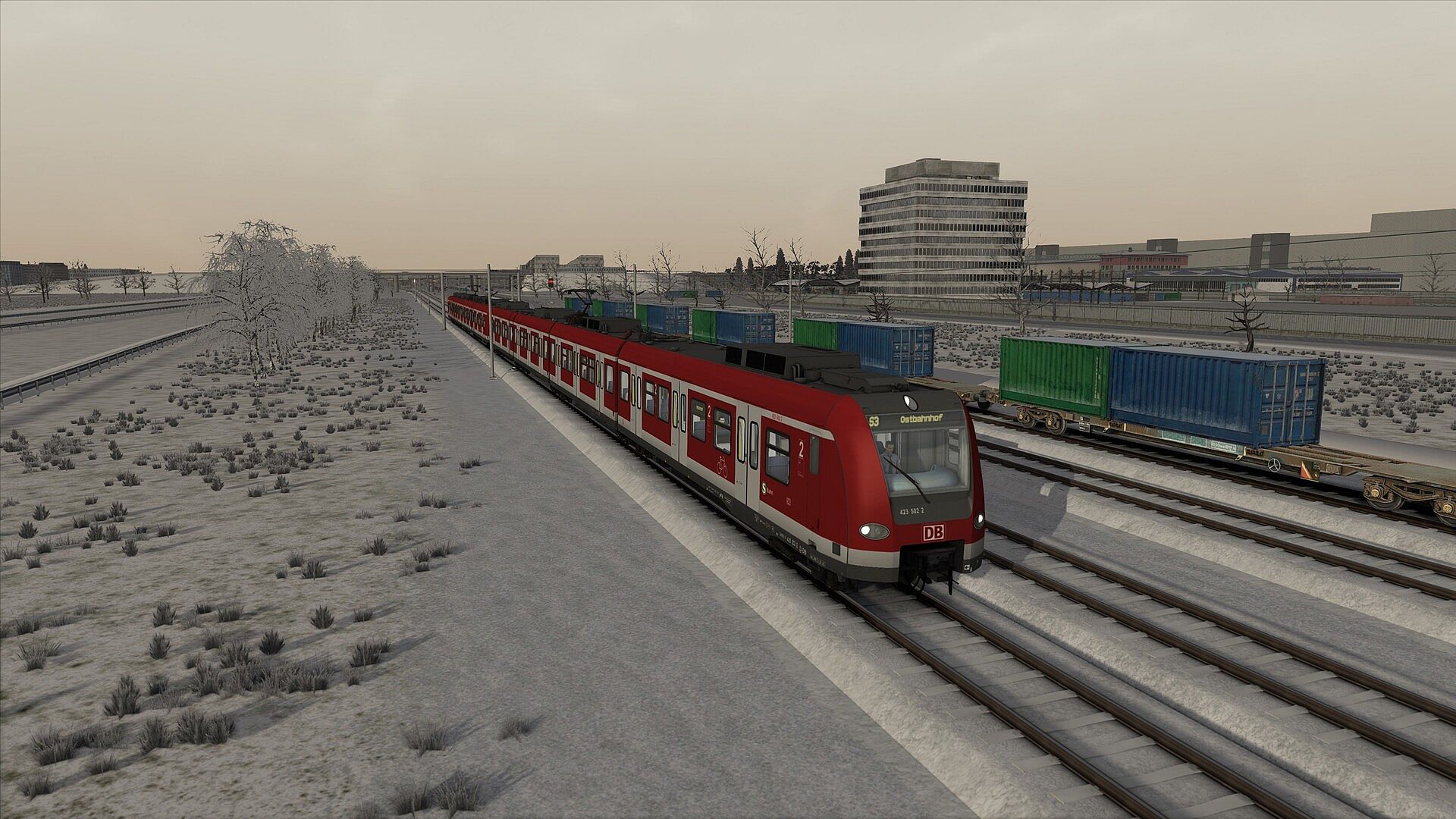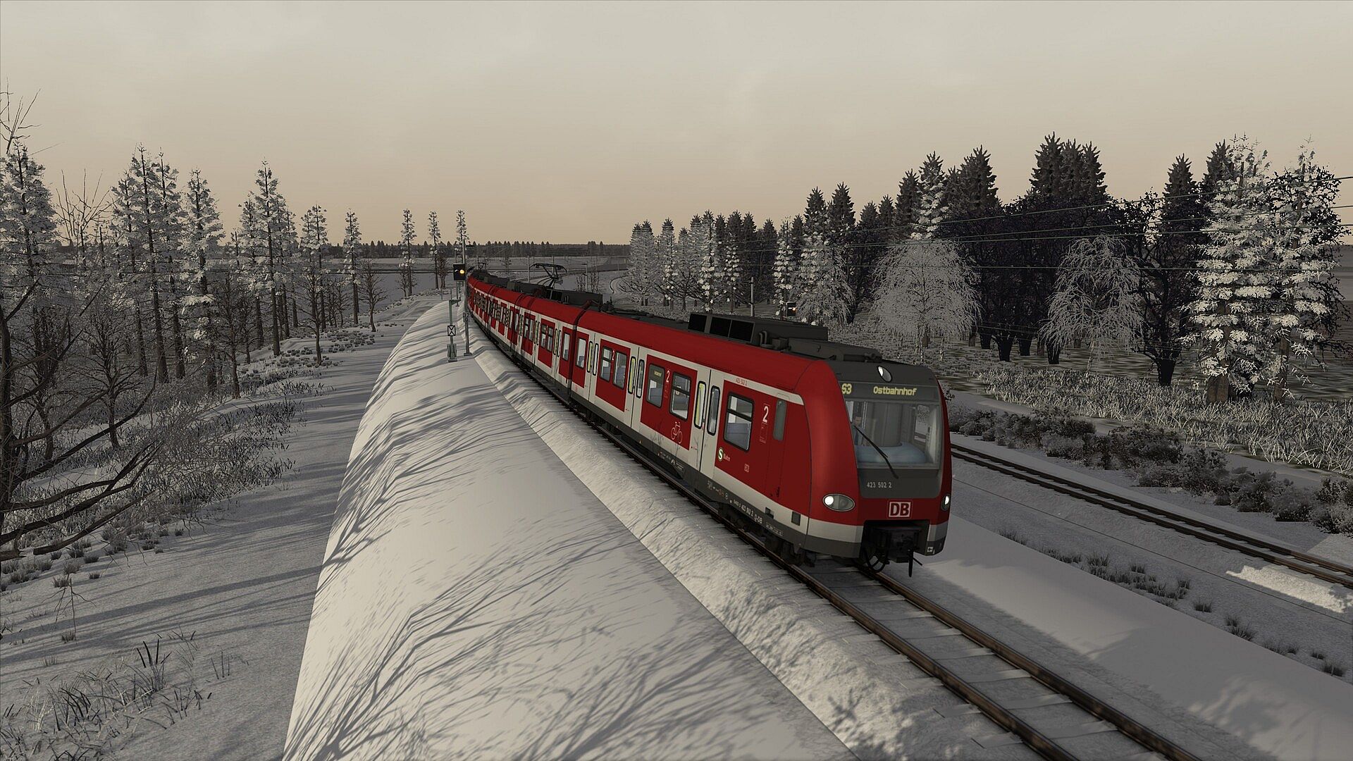 As recreated for Train Simulator Classic, Munich S1 crosses the city back and forth, East to West and North to South over a total of around 60km of track. As driver, you take control of DB’s venerable BR423, moving passengers on journeys across Munich lasting up to an hour. Along the way, expect to see AI freight and passenger services moving along between the Munich landmarks.